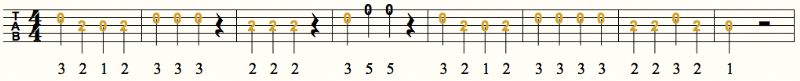 3 2 1 2 3 3 3 3 2 2 3 2 1Here are a couple of songs to get started:(spacing approximates rhythm)