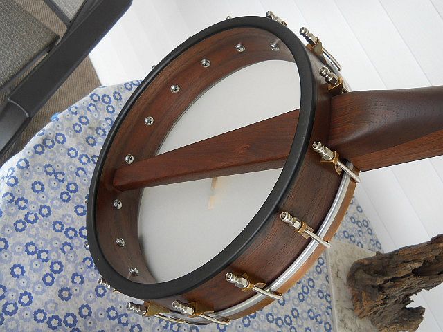 Rudy, that's great! The neck-thru design is pretty standard for cigar box banjos (gourd banjos, too), but to see what it can do on a finely-crafted banjo like yours is all the inspiration I need to try it on my next round, nice banjo! Love the way you handled the "mini Rudy Rod", once I understood it. And the 11 1/2" rim sounds like the best of both worlds; think I'm gonna go that route next time.