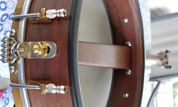 Hence the “Backstep” banjo, literally taking a step back in the evolutionary design process (...and paying homage to the tune form in the process). Anyone doubting the efficacy of the neck-through design needs to look no further than the success of the electric guitar and what its players were capable of.