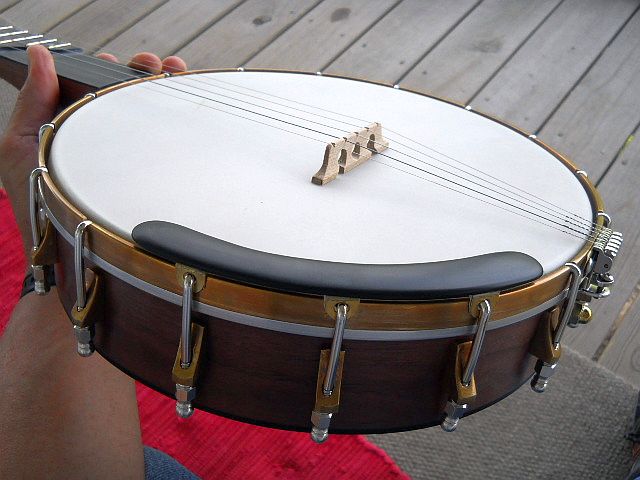 Thought I’d pass on a bit about a new banjo I recently completed that is a bit of a departure in design from what I usually build. The system of neck attachment and a few other variant details may be of interest.