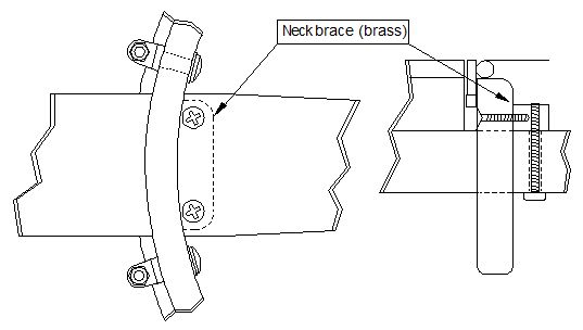 Neck reinforced with 3/8” thickness 2024-T4 aircraft aluminum bar tapering from 3/8” to 5/8”