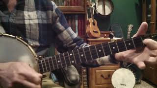 I’m working on this tune for my monthly lessons with Adam; we’re playing the tune in A modal (aEADE). Slippery Hill concurs, but I’ve seen some references to the tune in G modal as well. I became interested in learning the tune because a couple of old-time musicians here in Bellingham like to play it. I don’t get a lot of opportunities to play banjo along with other musicians so it’s nice to have some shared repertoire!