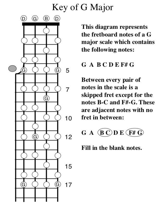 Let me suggest that that since the standard five-string banjo is tuned to a G Major chord, it would be best to first learn all the notes of a G Major scale instead of learning a complete Chromatic Scale. Attached is a basic worksheet which is a visual representation of G Major scale notes on the fret board up to the 17th fret. Follow the instructions on this worksheet and fill in the blanks and you will easily learn the notes of a G Major Scale: