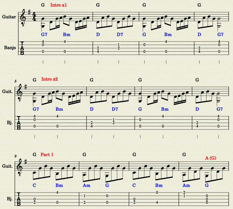 Please see attached PDF. My friend is using fingerstyle on the guitar (i.e. not strumming chords) and yes I am asking about Bluegrass/Scruggs/fingerstyle backup for my arrangement of a harmony line to go alongside his playing the melody and singing the lyrics. I first thought that I was limited to pinching or vamping chords but as I've read your replies I see that I have a ton more options for the backup. I don't plan on playing any lead breaks at this time although once I have some initial groundwork laid with my backup, perhaps that would be a viable option to explore in the future.