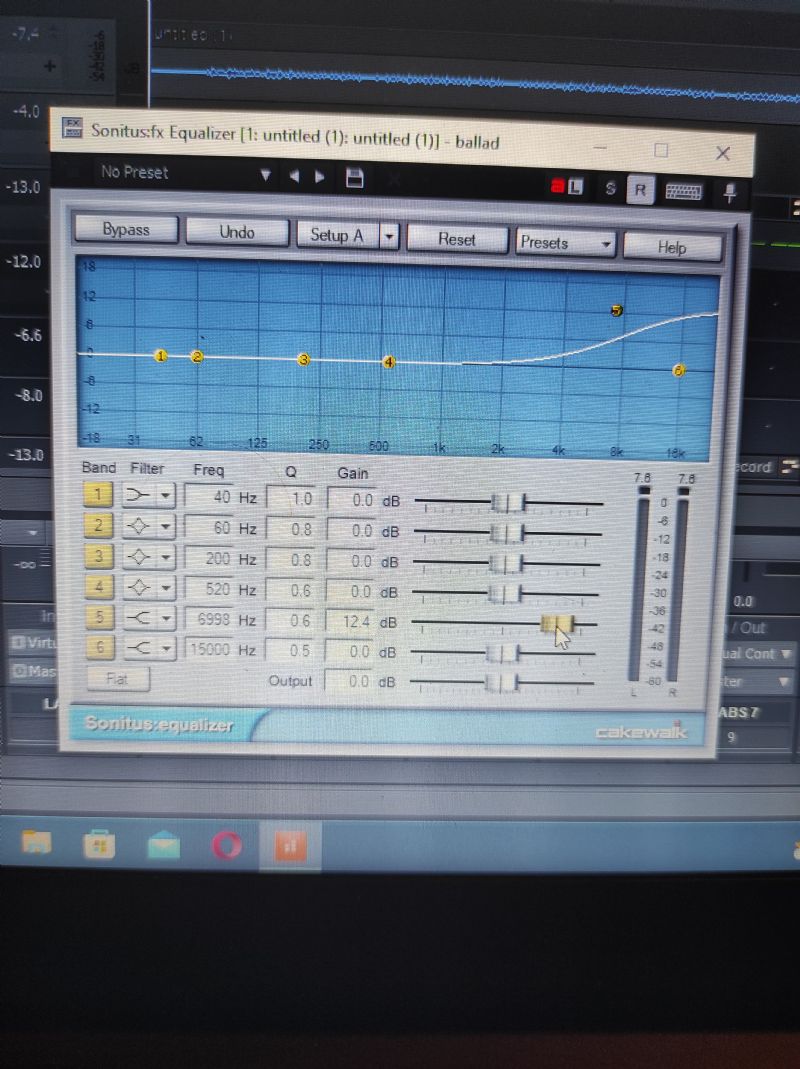 I'm actually recording a tune from an Rk35 and I basically have two questions... I have a very cheap mic (about $30) and I wasn't totally happy with the sound assuming it was that poor mic. Not that it was bad but just sounds like far even if the mic was place front of the banjo head. Until I started to play with the EQ... What definitely made a difference. I would like to know how I should set up the EQ on cakewalk (picture linked). I also post a pictures of my set up. I could buy another mic in a price range of $100. Any suggestions about that? I know it's not much but it's just not really my priority right now. Concerning the EQ setting. Please try to describe simply how I should set it up. I obviously don't understand anything about it and just try so set it ounce to record my banjo. Thanks to anyone taking on his personal time to answer me. Ben