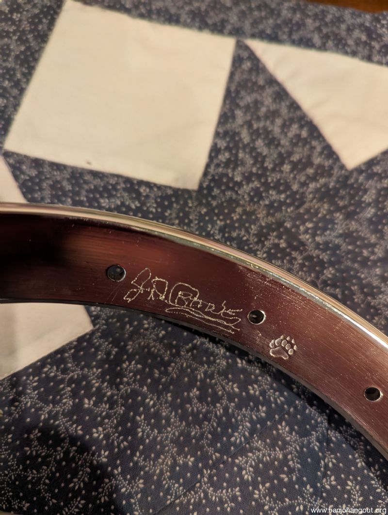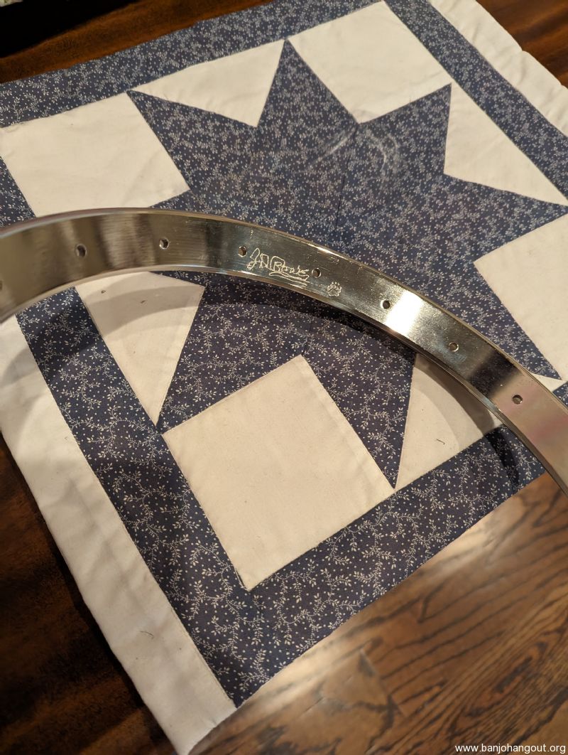 Rare, hard to find tone ring by Bill Blaylock. A reliable source tells me no more will be produced. Excellent plus condition. Long skirt, flathead ring.