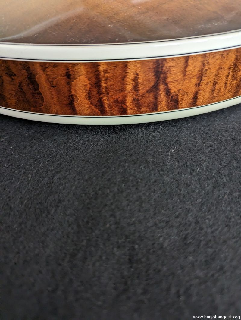 Gill resonator, stained and finished by Robin Smith, with binding and stain color that would typically be found on many Gibson Granada model banjos.