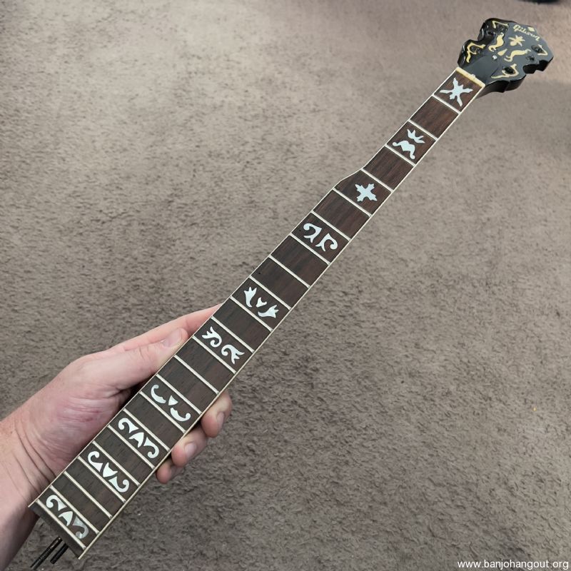 For Sale is a very nice and interesting older Gibson RB-800 neck. This neck came off a parts banjo I recently purchased and has the SN 26192 stamped in the back of the headstock. It has a beautiful flamed maple, straight without any twist, sunburst finish, rosewood fingerboard and comfortable larger frets.