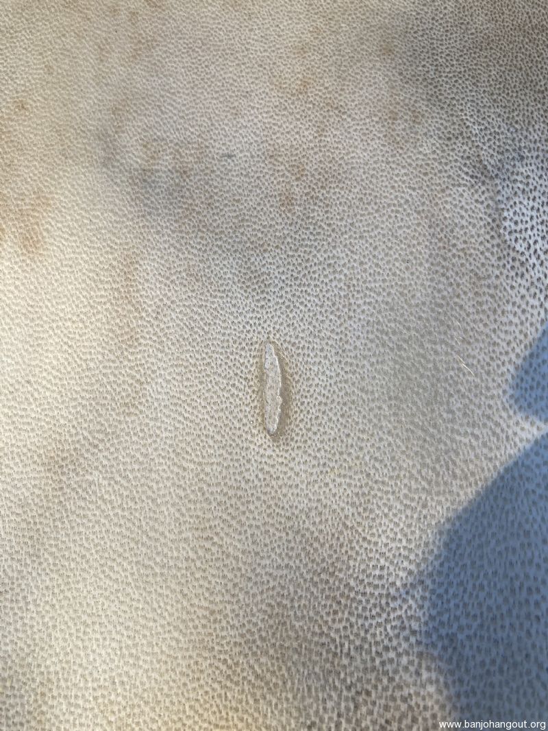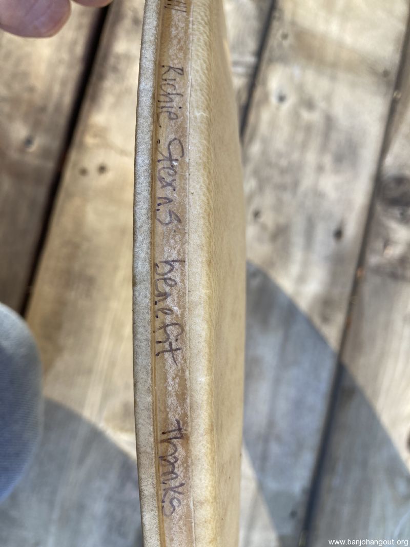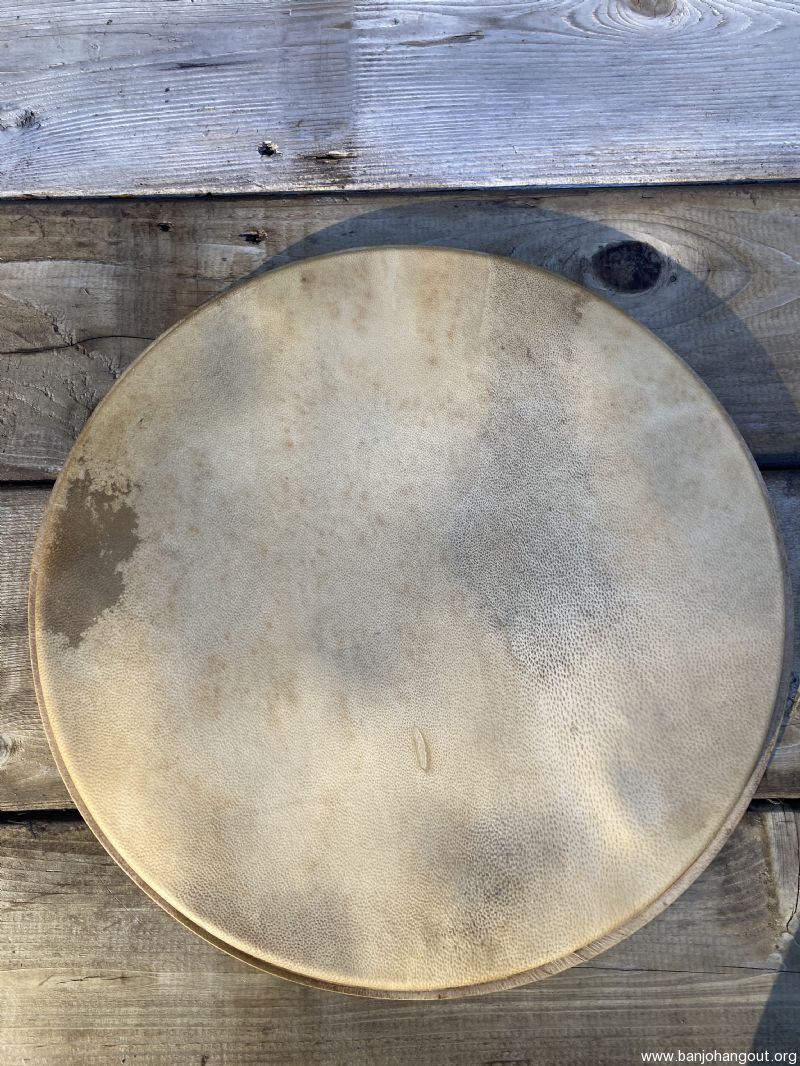 John Balch 12” Three Star hide head in very good condition. One small blemish approximately 3/4” x 1/4” as shown in pics. It can be felt when running a finger across it, but isn’t deep enough to see it on the back side.