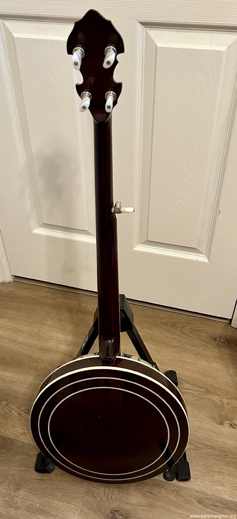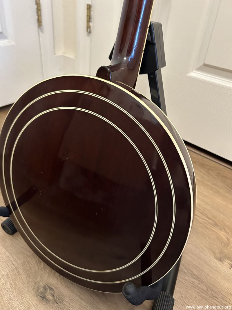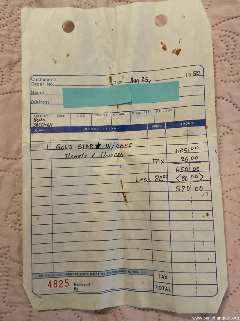 I purchased this banjo many years ago from an older gentleman in NC. Receipt found in case shows August 25, 1980. The heavy tailpiece was cracked and I replaced it with an older Presto that I had (missing cover).