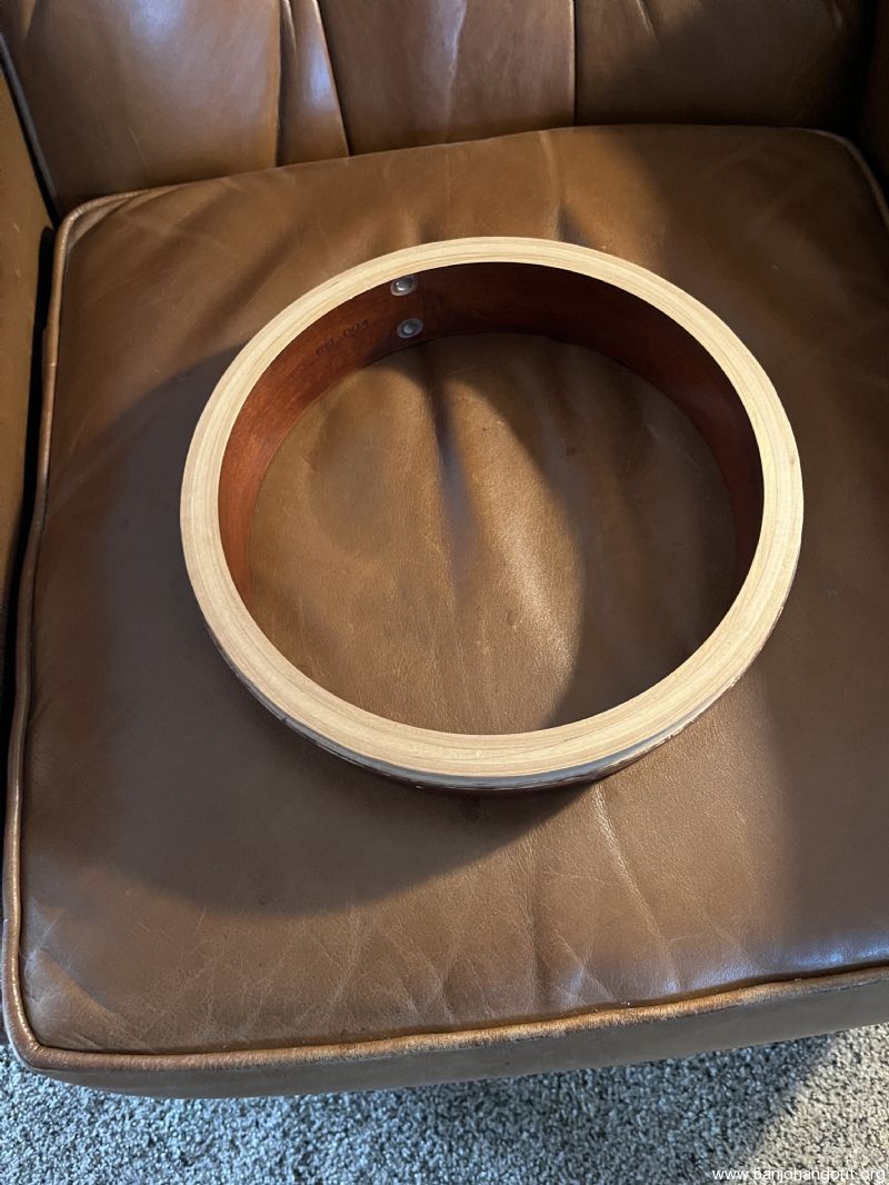 Robin Smith roasted maple rim for flathead, one piece flange. Comes with resonator brackets and screws.