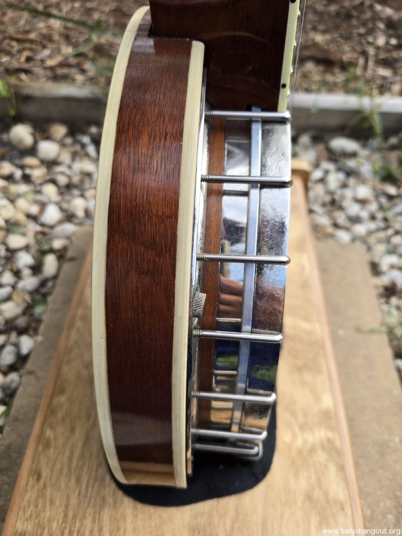 I purchased this particular instrument at SPBGMA last year as a tenor with the intent to have an uncut (no full flathead ring) in my arsenal. Frank and Ricky Neat built an excellent 5 string neck for me with rosewood I sourced and mahogany from the stash they had accrued over the years for necks that JD Crowe might order.