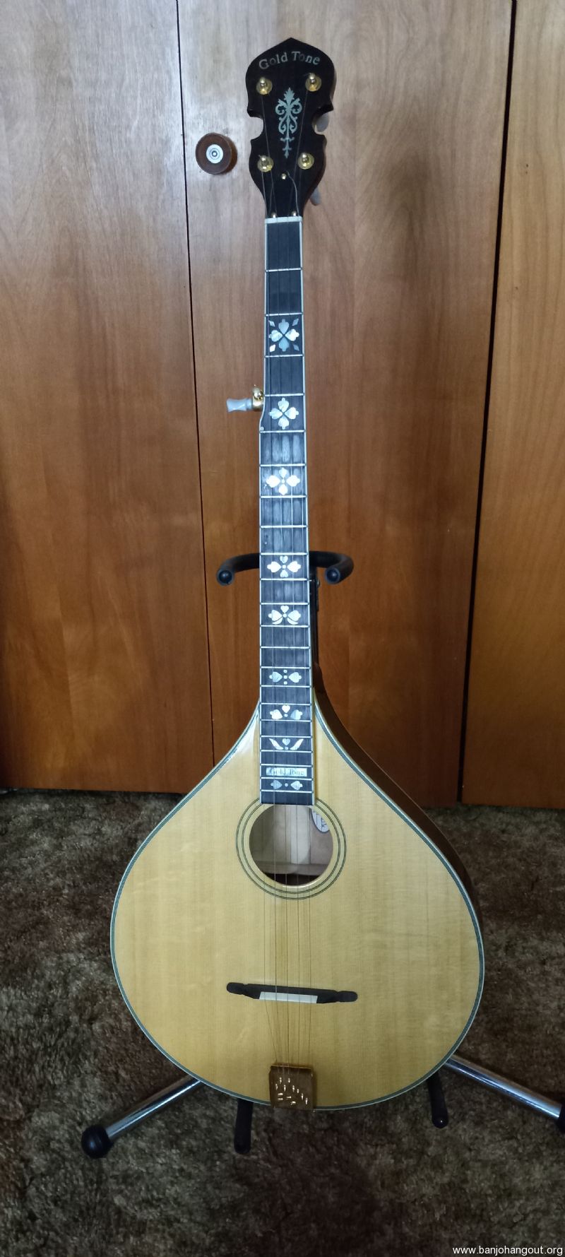 For sale Gold Tone Banjola Delux. Solid maple back and sides, spruce top hand carved top and back. Hearts and flowers neck inlay. Sn 2406771. Purchased aprox. 2000, very lightly used, no scratches of marks, like new condition with like new original case.