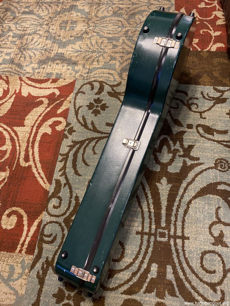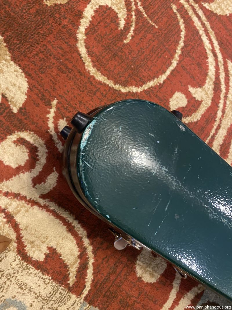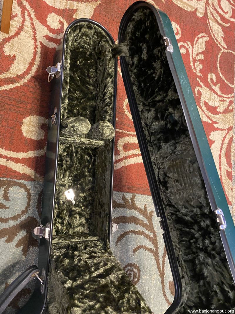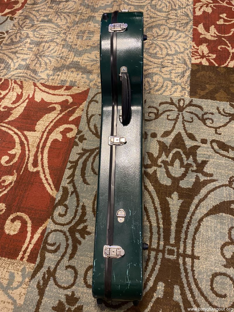 Carlton resonator banjo case made in Canada. Dark green exterior has scratches and scuffs from ordinary use. All latches, hinges and bumpers are in good working order. Interior is excellent and very clean. Free shipping to 48 states. Case serial number is 17367. Offered at half the price of a new Calton.