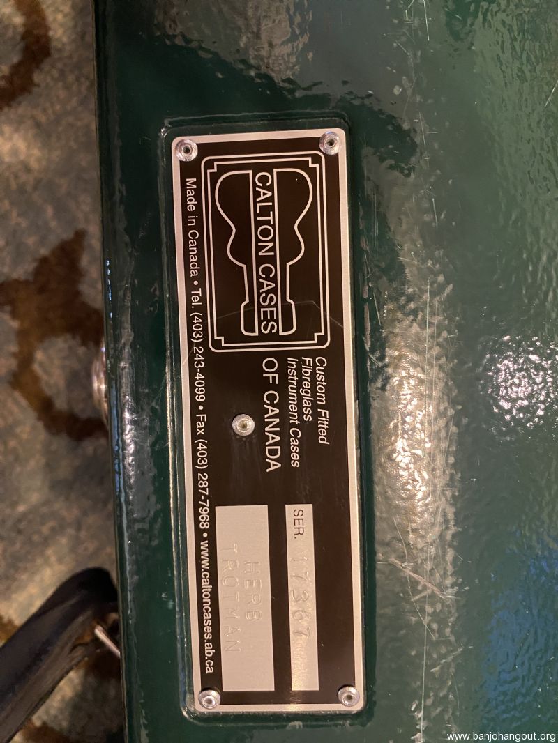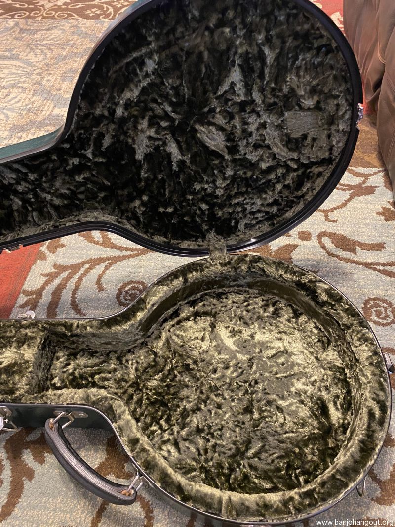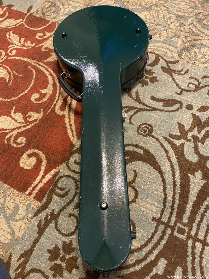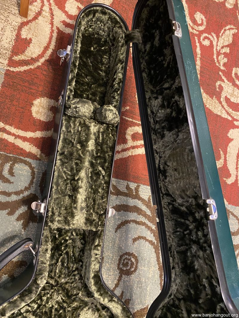 Carlton resonator banjo case made in Canada. Dark green exterior has scratches and scuffs from ordinary use. All latches, hinges and bumpers are in good working order. Interior is excellent and very clean. Free shipping to 48 states. Case serial number is 17367. Offered at half the price of a new Calton.