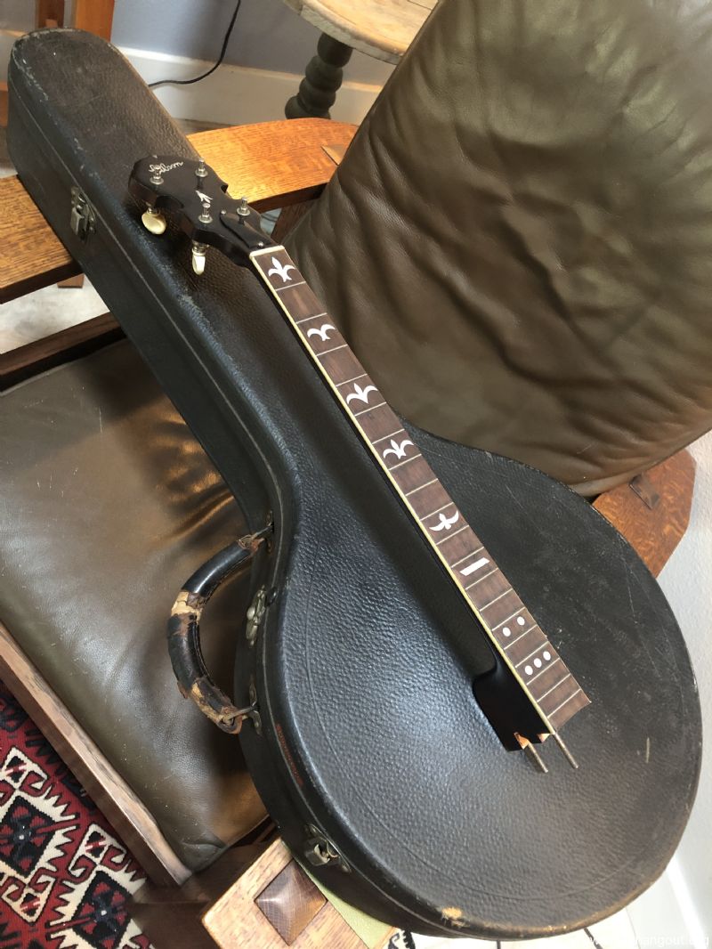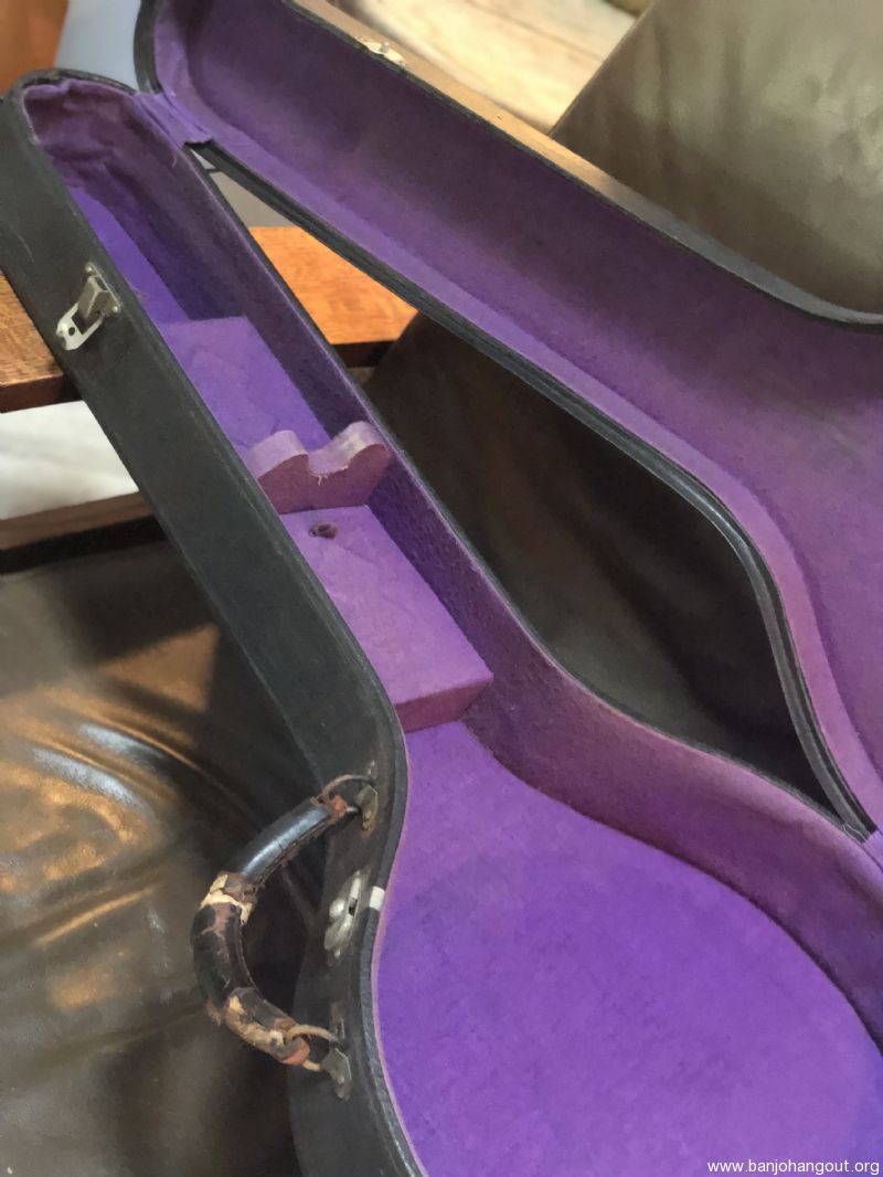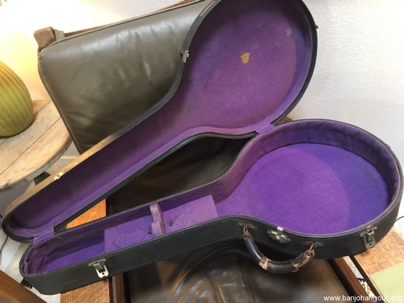 Nice, clean condition Gibson style-1 tenor neck, with Grover 2-tab 2:1 tuners. Straight grain maple neck w/ Brazilian rosewood fingerboard. BullsHead tenor banjo case. Case needs some exterior work up by the peghead…wood glue & clamps? Let me know if you’ve got questions.