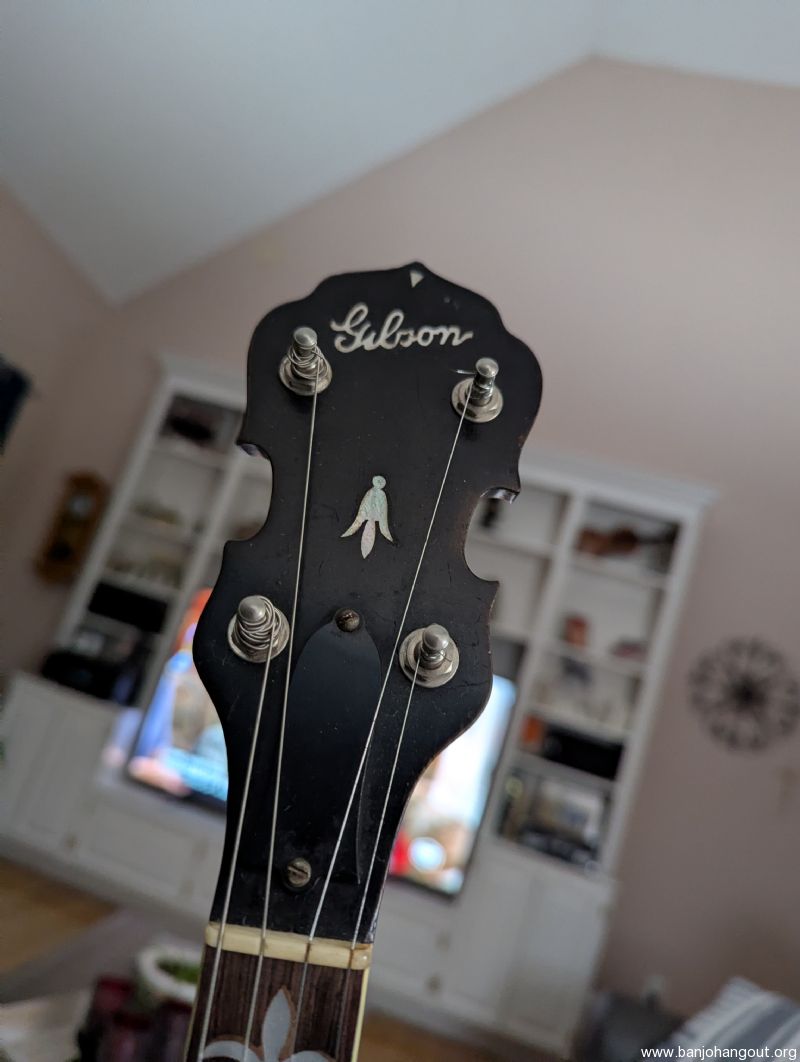 Beautiful Pre-war Gibson parts 19 fret tenor banjo. Neck is Style 1. Pot is all original thin rim TB 00. A rolled brass ring has been added.Resonator is post war TB 100. Five star planetary tuners and five star head. Armrest is not Gibson. This banjo was played for years by a jazz man from the East coast. I even have a CD that I'll ship with the banjo so you can hear it in action. This would make a great Irish tenor banjo or jazz banjo or an excellent candidate for a conversion to a nice lightweight five string.