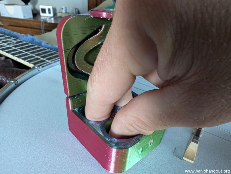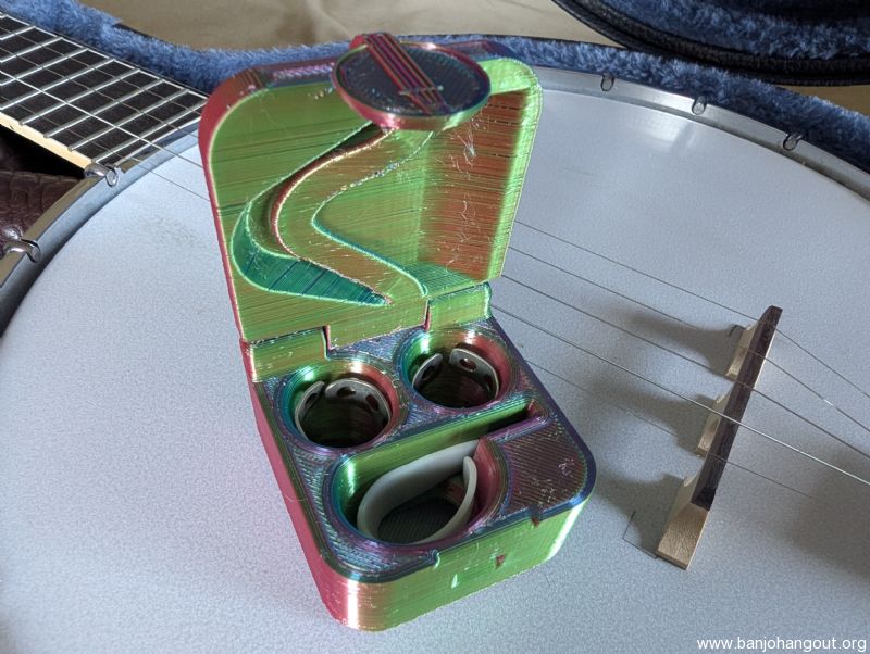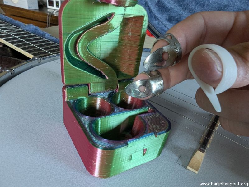 Have you ever needed to play banjo on a moment's notice and those darn picks take too long to get on? Here is your 3D-printed solution! The item you are purchasing is the box only. Multiple colors to choose from! All images that show picks, batteries, etc. are not included in the purchase of this item. Something doesn't seem to be correct about the box, let me know and we'll work to get something works for you.