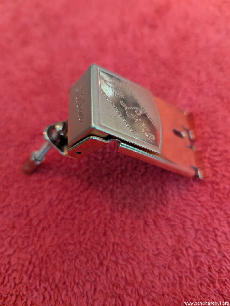 Gibson gold plated Deluxe engraved tailpiece, as used on the Earl Scruggs Golden Deluxe Model. Doesn't appear to have been used.