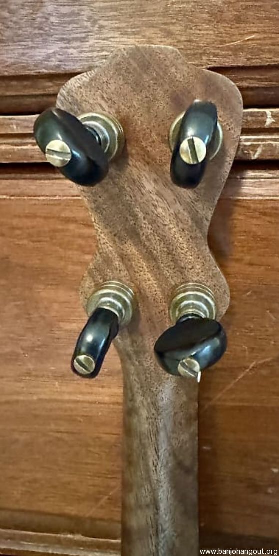 For sale is a like new Brooks Masten short scale banjo. 24 5/8" scale, 10.5 inch walnut rim, no tone ring, curly walnut neck, ebony fretboard, evo frets, Brooks tailpiece, goatskin head, Gotoh tuners. Superior gig bag included.