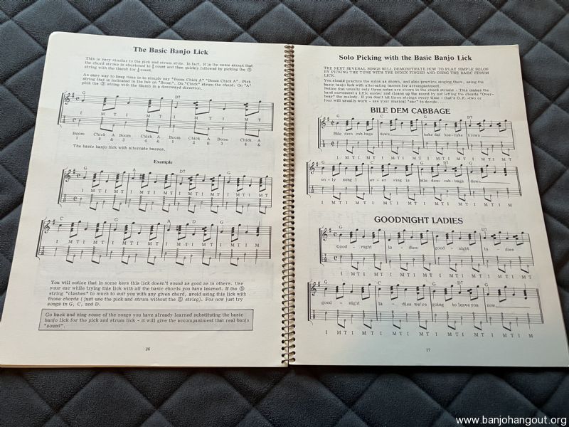 Picked this up some years ago at an antique mall. Good starting point for folks wanting to try both fingerstyle and clawhammer picking styles, alternate tunings, etc. Wire-bound. I rarely use tab and learn primarily by ear, so I’m passing this one on to the next picker.