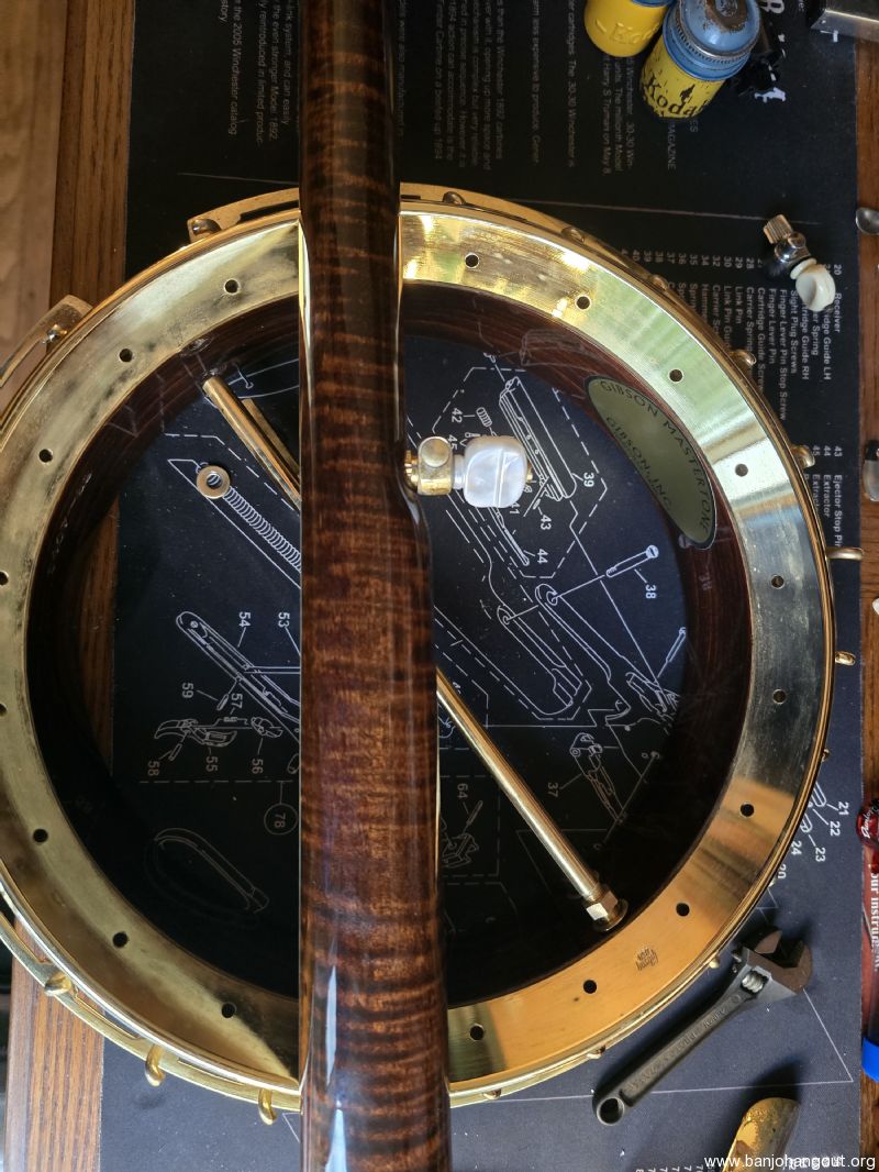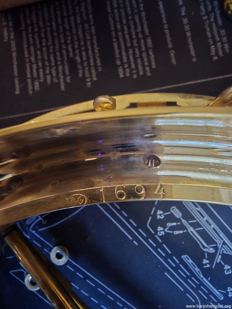 With the exception of new Gotoh tuners (the originals were just... awful...), this banjo is completely original (with the exception being a bridge and head once I tore it down and set it up from scratch). See photos attached as the rim, tone ring, and flange all bear correct markings. The neck even has stamps in the heel on when it was made, which I had never seen before.
