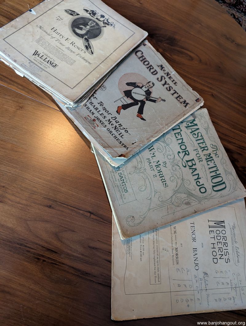 Offering these books to anyone interested in them for the cost of shipping. If they have value to those in the tenor banjo community, as historically significant items related to Reser, McNeill and the Wm. Morris Publishing Co., Just pay the shipping and they are your's.