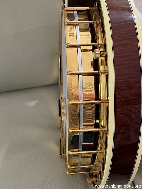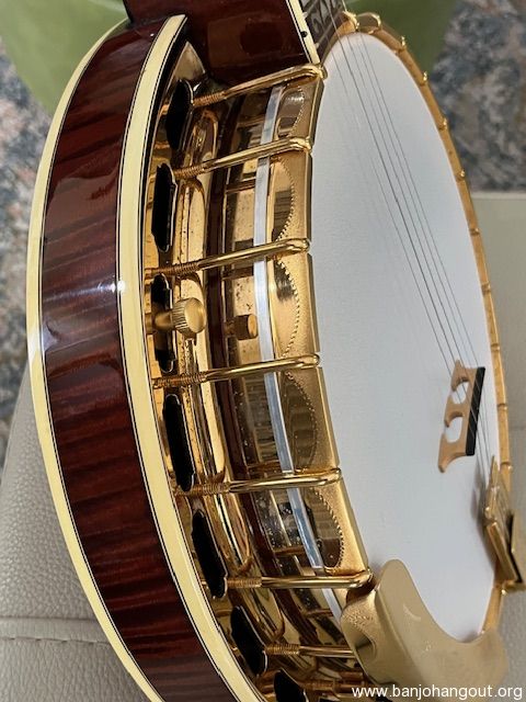 For sale is truly an exceptional example of the Greg Rich era of Gibson Banjos. A 1988 (#8811) Gibson Granada that is as near mint as your likely to find. This banjo has the desired Kulish Sr. Tone Ring. Flying Eagle Pearl inlay pattern on the Peg Head and Rosewood Fingerboard. All gold hardware is as new with zero wear. Beautifully figured Maple Resonator and neck. 5/8” Grover bridge. Scruggs style tuners 2nd and 3rd strings with original Gibson tuners in the case. Railroad spike in the A and B position on the 5th string. Very minimal wear on the frets. Original warranty card in case.I literally find no flaws anywhere on this banjo which is remarkable because it has been played some but obviously very carefully and meticulously cared for. The Greg Rich era banjos are fast becoming some of the most desired of the Post WWll Gibson banjos. Case is a black TKL type case but not original. Thank you for looking. In summary if you're looking to find a Post WWll investment quality Gibson banjo, this might be the one. $9,000.00 + Shipping. Thank you, Frank