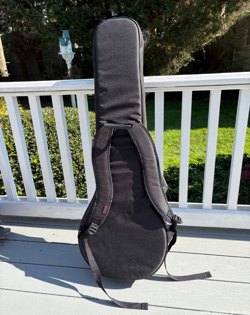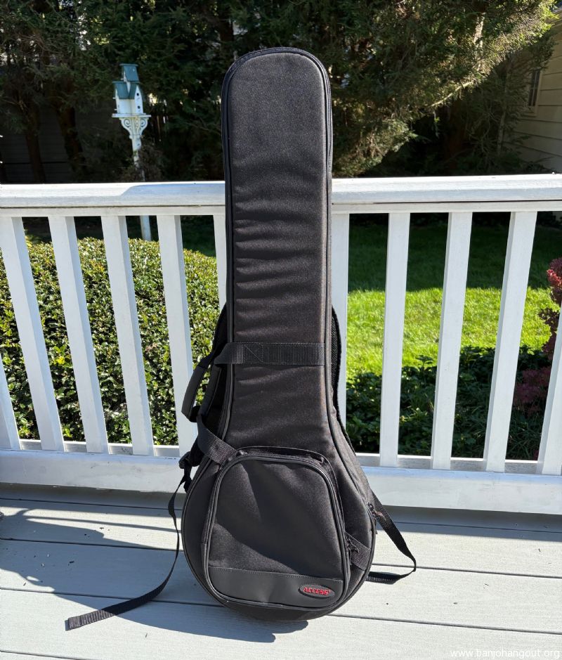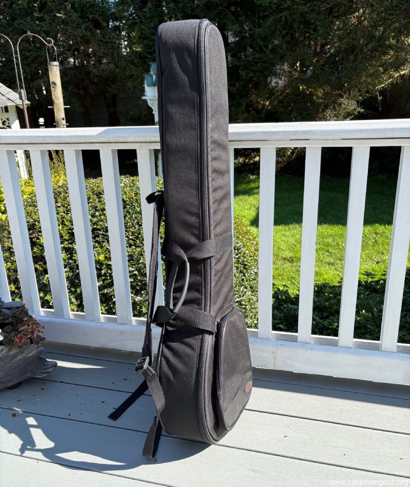 Durable black nylon exterior, dense foam padding, wall stiffener. Strong nylon web handles, nylon zippers, large accessory pocket, and dual padded shoulder straps. Shaped profile, designed for traditional openback banjos with 11" rim (a 12" rim banjo will fit, but the fit is snug) and up to 37" long. This item has never been used. SHIPPING VIA UPS GROUND. PRICE WILL DEPEND ON DELIVERY LOCATION