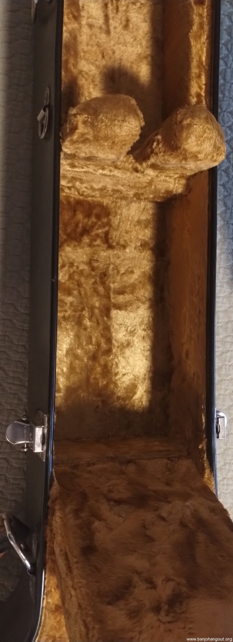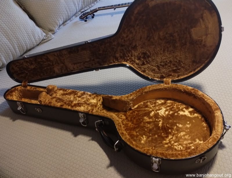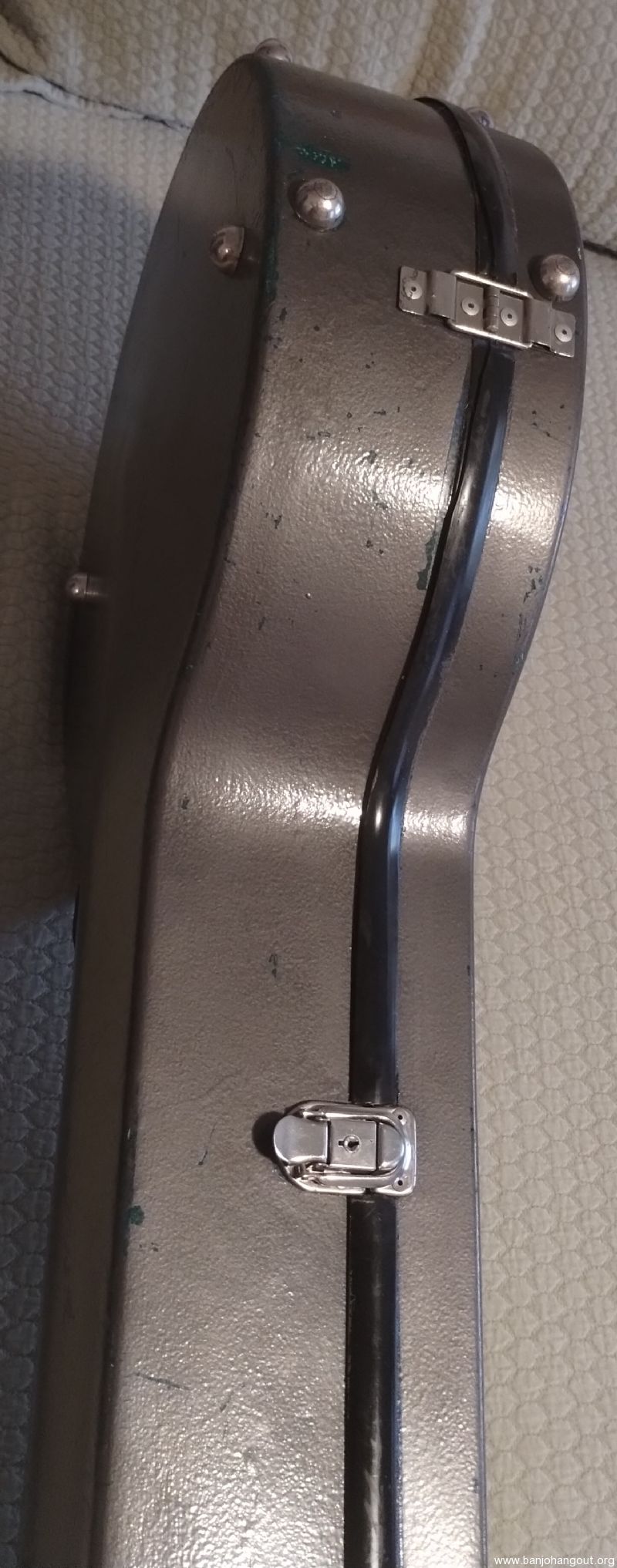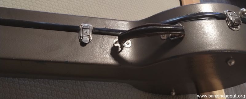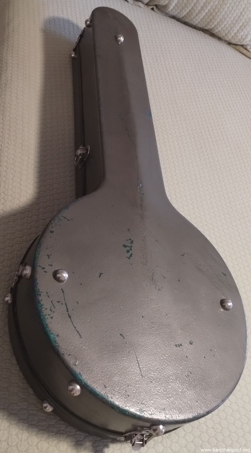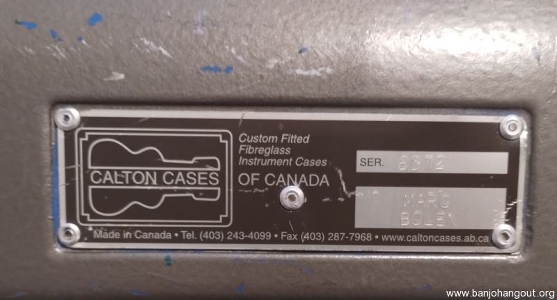 Calton banjo case for sale. To be clear, this is a used, older case which I purchased used 21 yrs ago & I'm the 2nd owner (I believe the total age of this case is about 25 yrs). This case was originally a green color when built at the Calton company (Canadian location) & it's been repainted twice: once to blue and 10 yrs ago to it's current gray color. Note: The silver, ID plate can be replaced & obtained by contacting Calton (which I did 21 yrs ago).