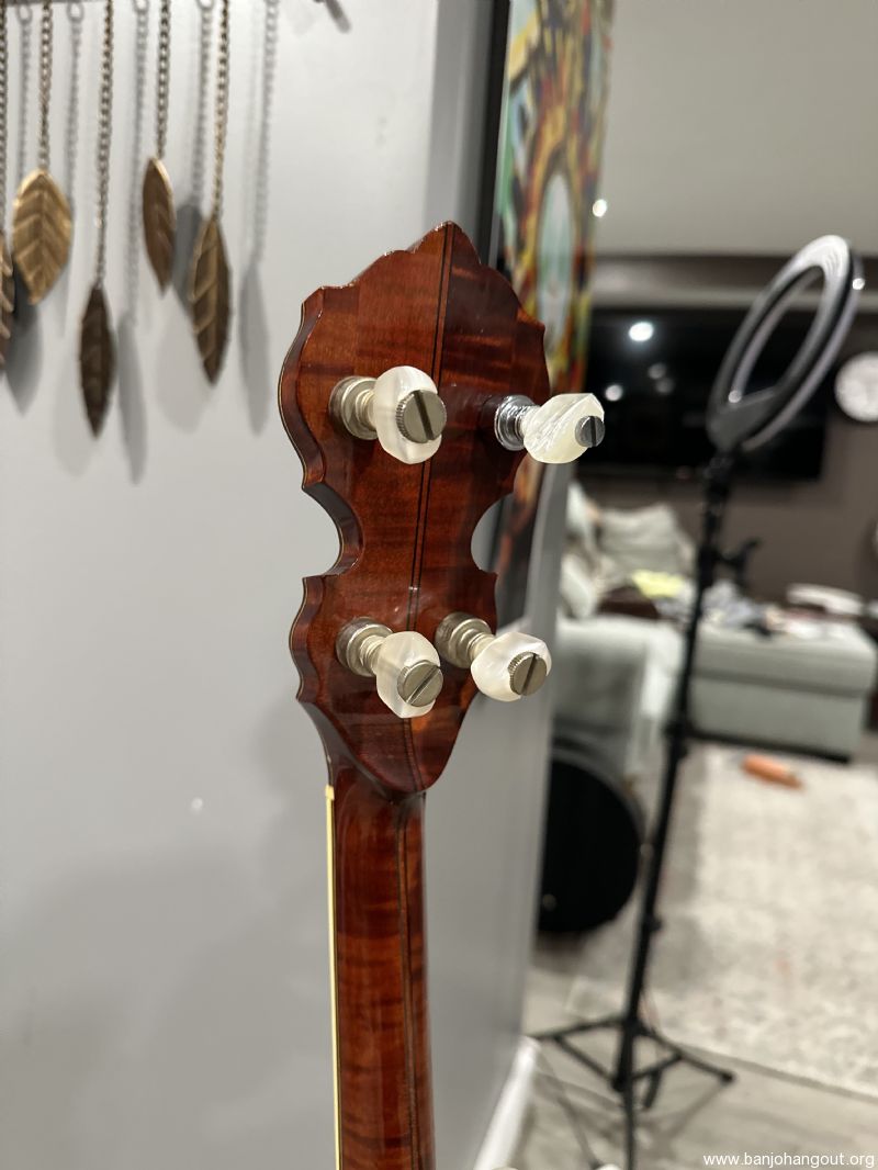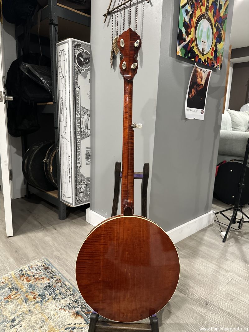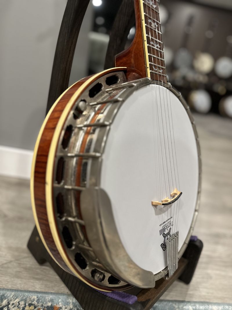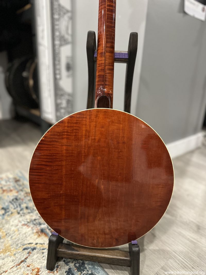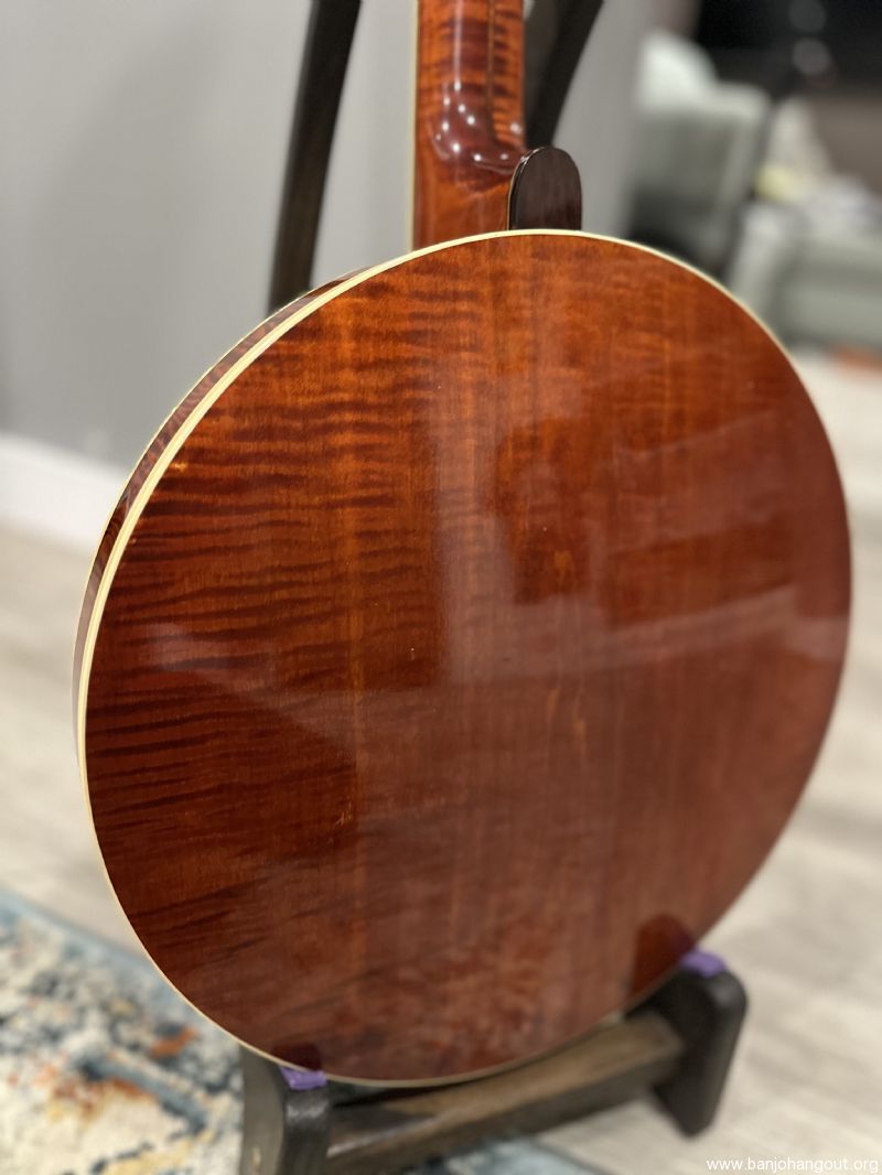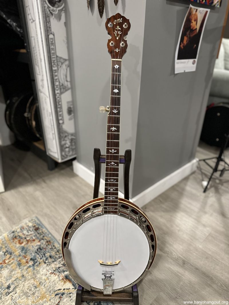 This Boulder Colorado Ome Monarch banjo is becoming more and more sought after and features the Ome no hole tone ring and one piece flange for incredible response and volume. This gorgeous maple banjo features all of the nice details from these Ome Banjos in this time period! One owner instrument, originally purchased in 1990, with a recent setup with Turtle Hill Banjo Head and moon bridge.