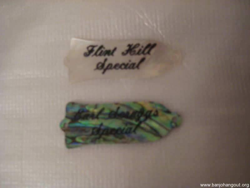 Here are two special truss rod covers being offered for sale. One is a genuine Gibson Abalone "Earl Scruggs Special" and the the other is a genuine "mother of pearl" "Flint hill Special". These are both "new old stock" from the Gibson factory and are not reproductions. The Abalone "Earl Scruggs Special" is $100.00 plus shipping and the "mother of pearl" "Flint hill Special" is $80.00 plus shipping. Thanks Mike in Minnesota