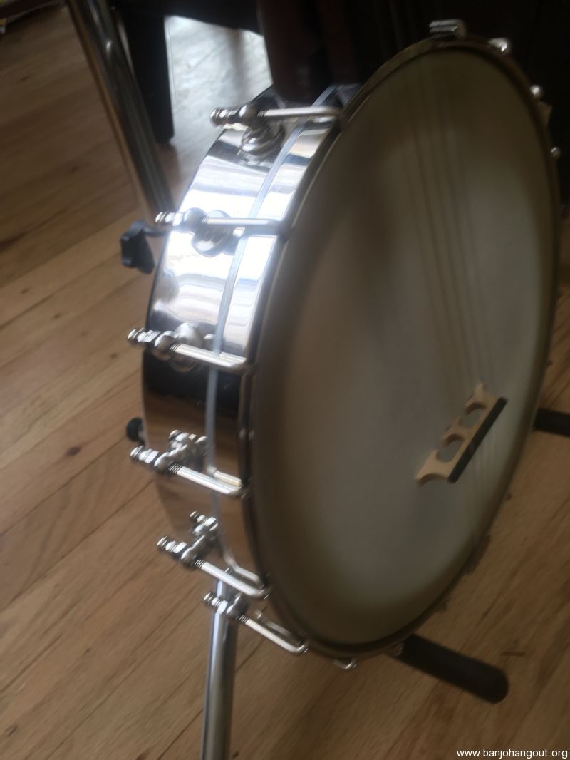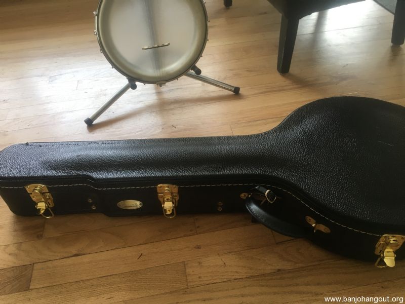 Enoch Dobson 11" open back 5-string 25.5" scale nickel spun over banjo with Renaissance head, fretted walnut neck, scooped fingerboard, and nickel hardware. Serial 'D 068'. Banjo includes a TKL hard shell case that fits instrument like a glove.