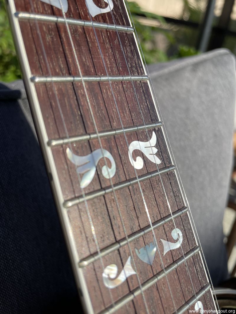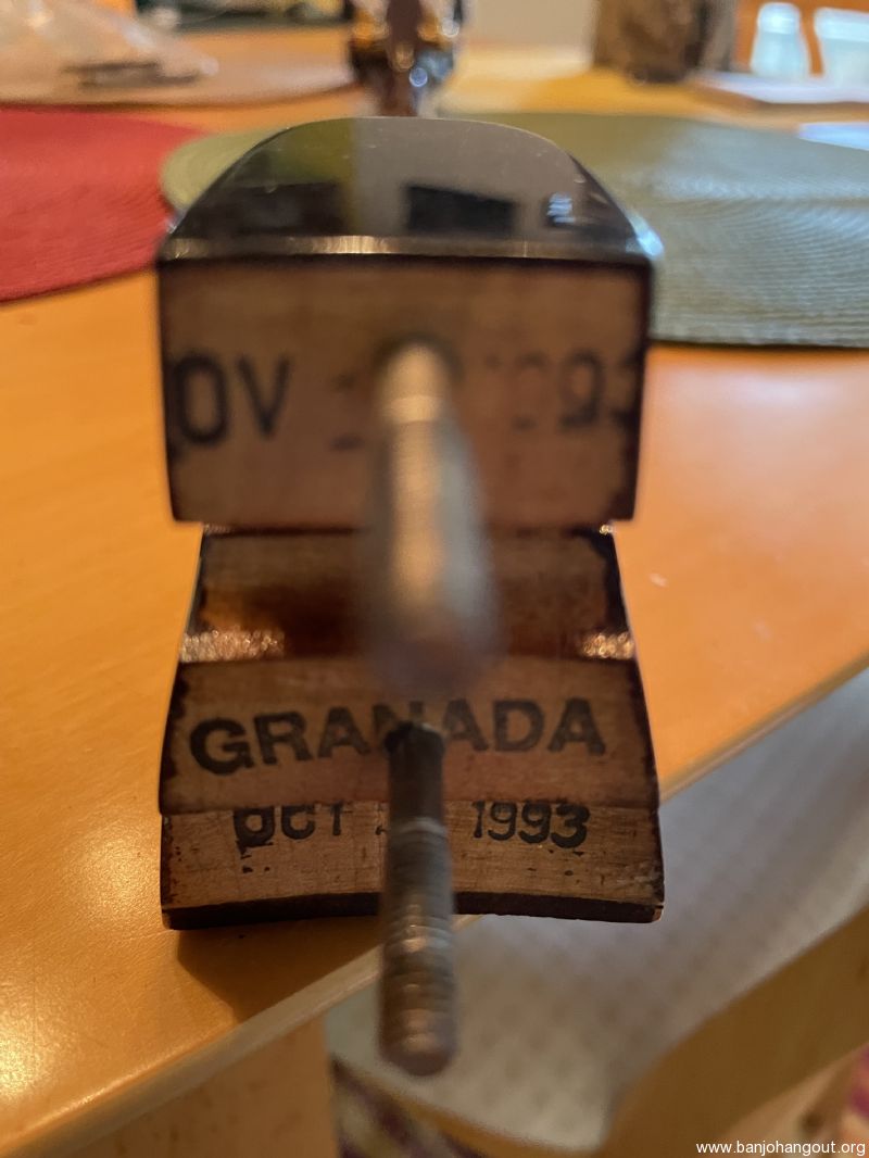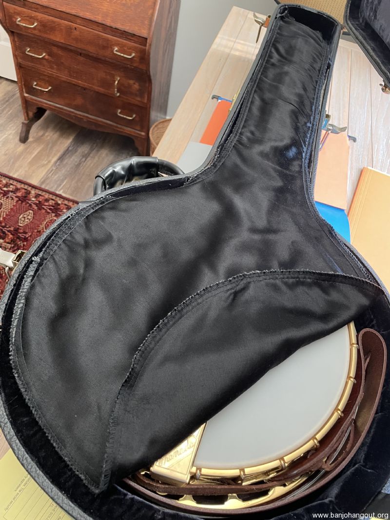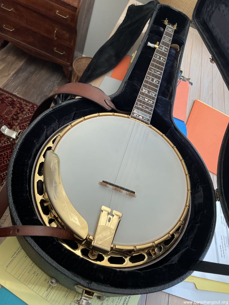 Very clean ‘94 Gibson Granada (Nov. ‘93 neck) w/ original Gibson hsc. Purchased this recently in hopes of having a substitute for my pre-war Mastertone. Its frets had been dressed (flattened) before I received it & I felt it could benefit from a re-fret. It’s now beautifully re-fretted by master luthier Ronnie Griffin of Woodbine GA…Harriett’s Bluff Rd exit.