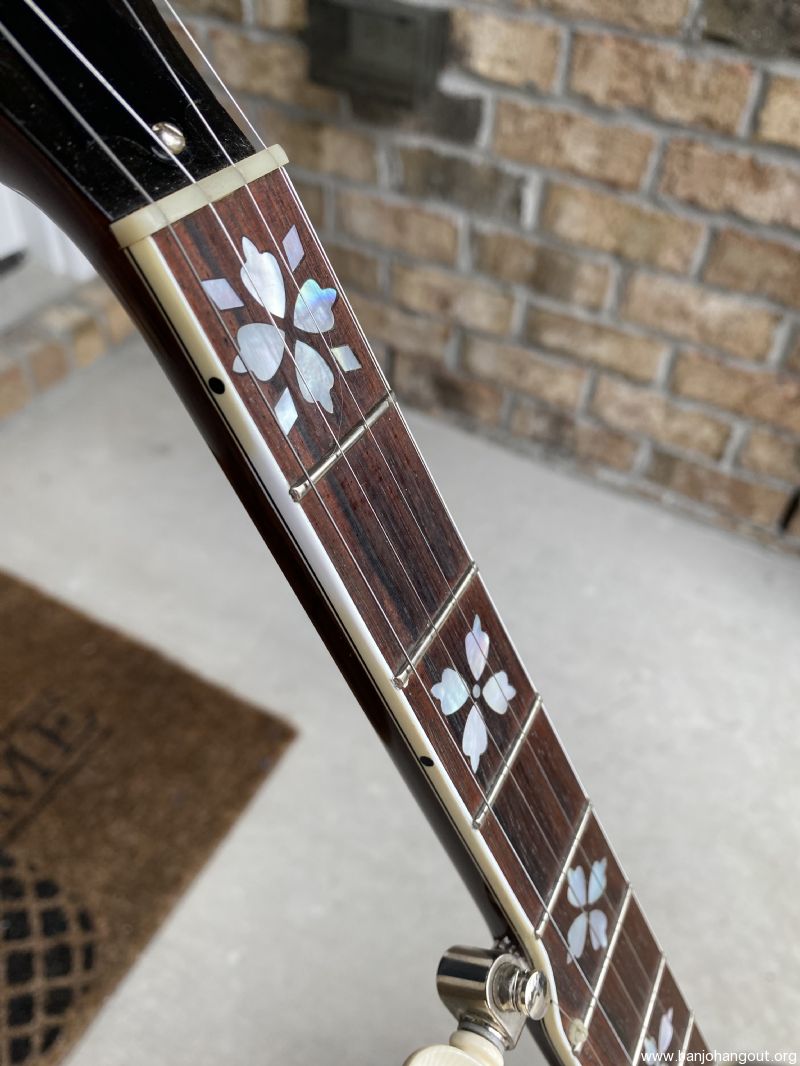 Banjo is unique with Hearts and Flowers inlay as opposed too typical Flying Eagle on this model…..resulted in a really nice looking peg head.