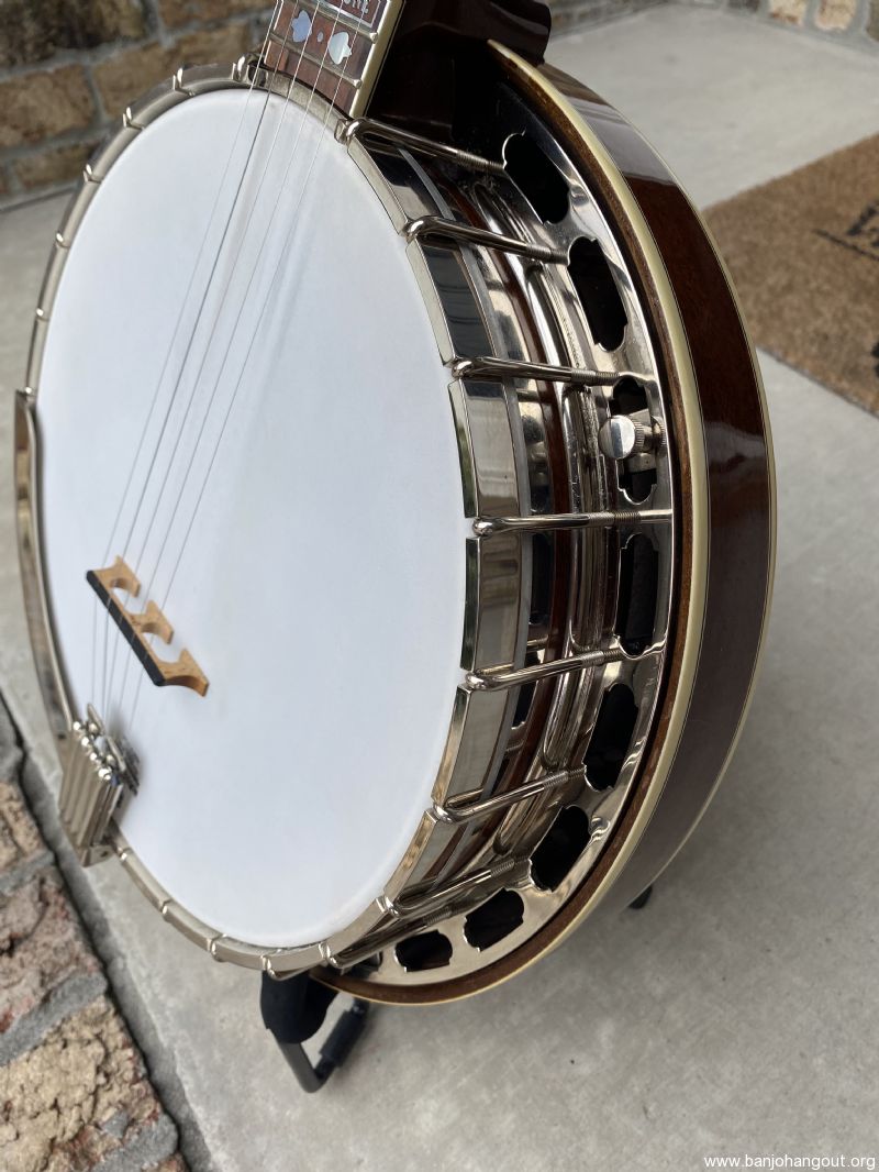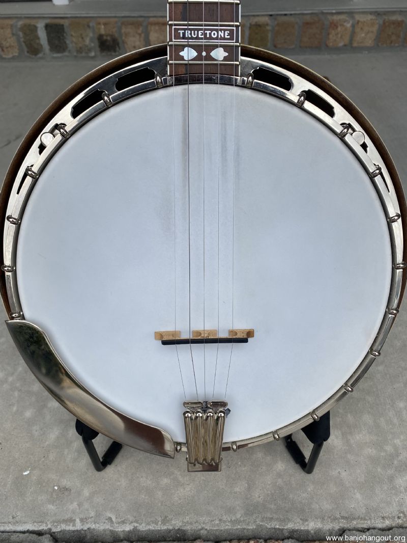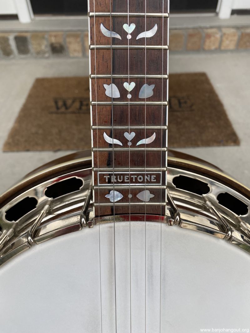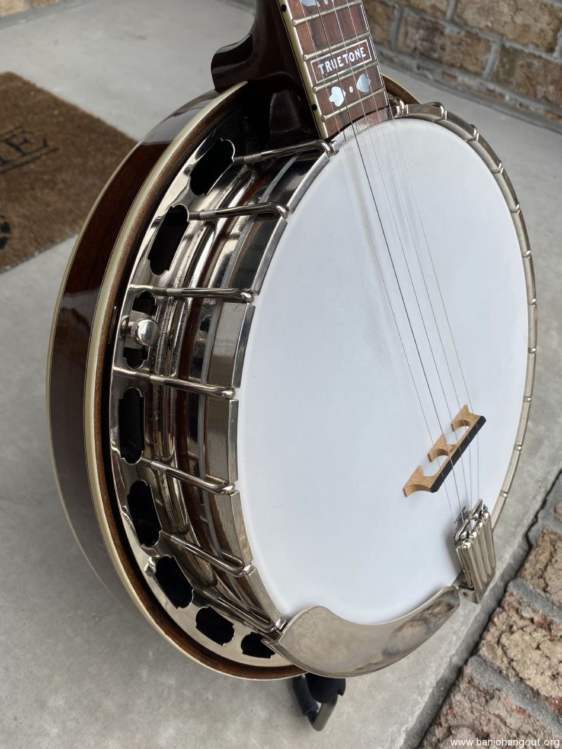 TrueTone with HR-30 ring and engineered rim. Comes set up with original clam shell tailpiece, spikes at 7, 8 & 9, Huber bridge.