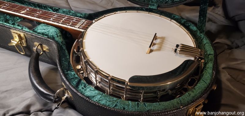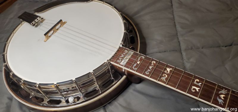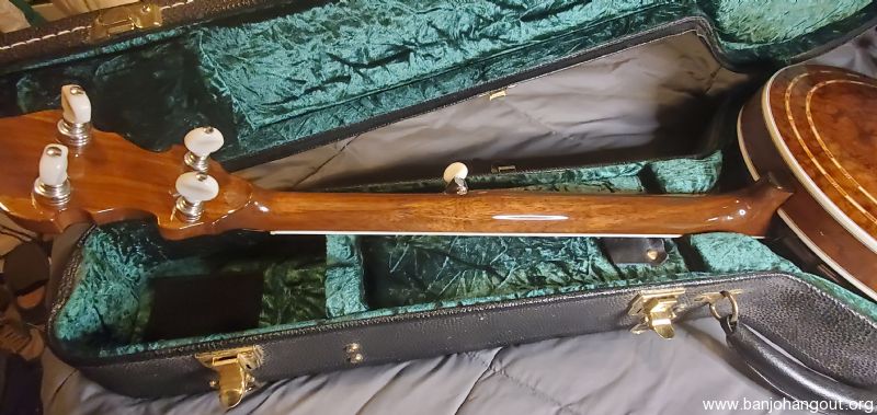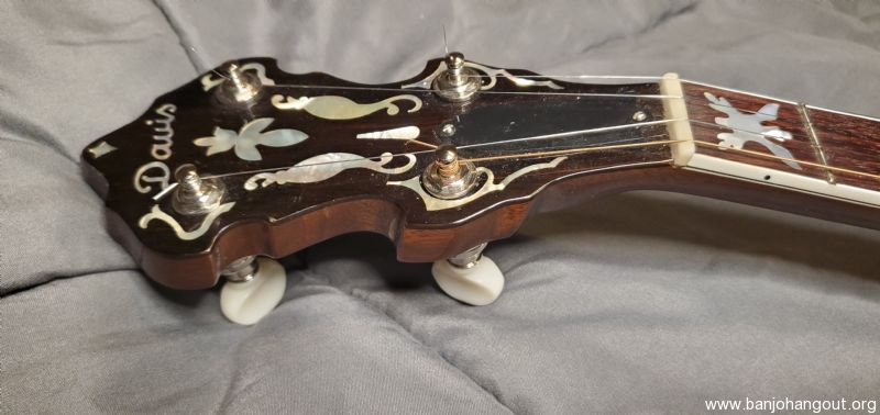 I have a great Davis VT-4 banjo for sale. This is a copy of a good Walnut RB-4 banjo. It plays and sounds great. It has some light fret wear with plenty of life left. It has some scratches as is to be expected with a good banjo, but nothing that really jumps out. It does have some marks on the peghead from having a set of Cheat-A-Keys on it.