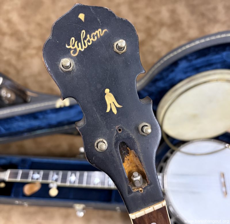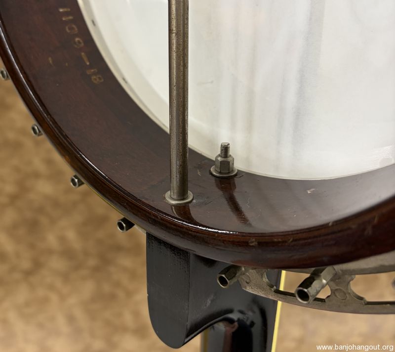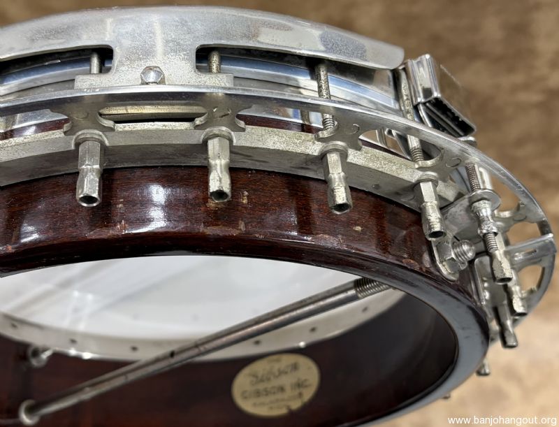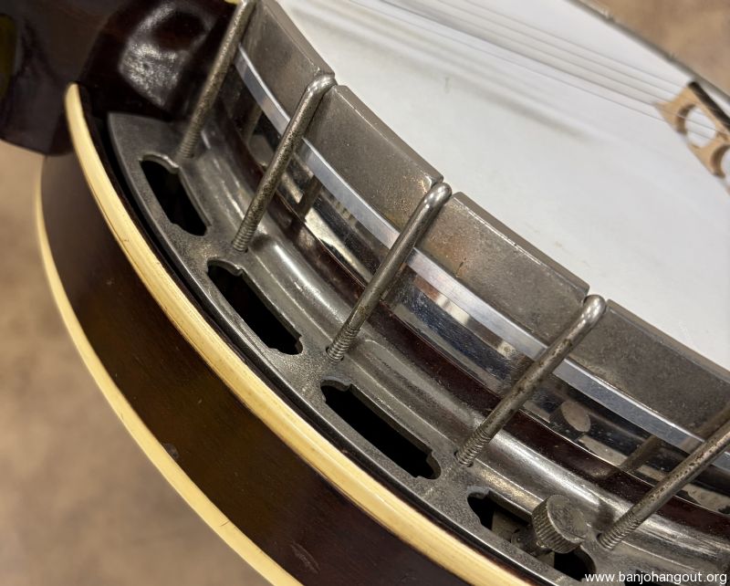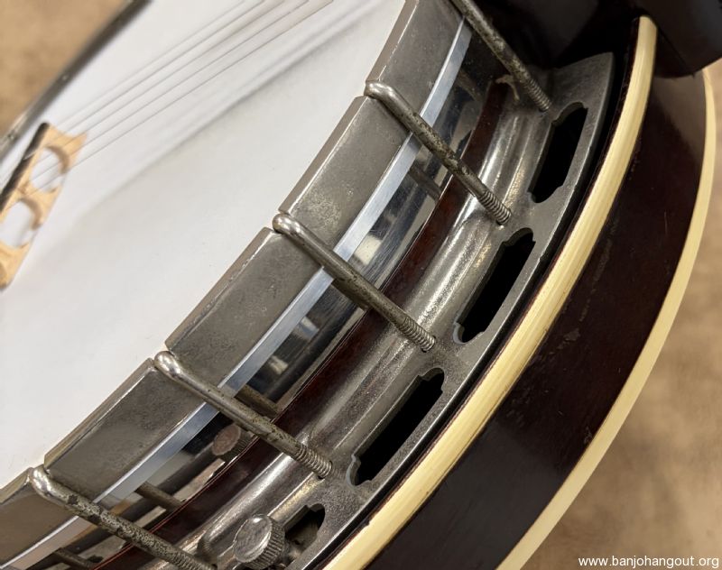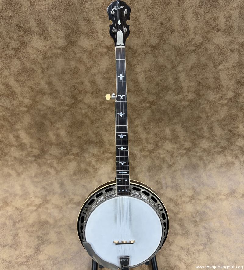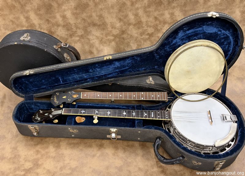 This 1937 Gibson Style 1 remains in fantastic condition and has been converted to a 5-string flathead. The rim was fitted with a Huber HR-30 tone ring by Steve Huber and the maple neck is by Ron Coleman. This neck was patterned after the original tenor neck which is included in the sale along with the tenor case. The rim is drilled for a second coordinator rod and can be installed if so desired. If you desire additional pictures or have any questions, don't hesitate to ask.