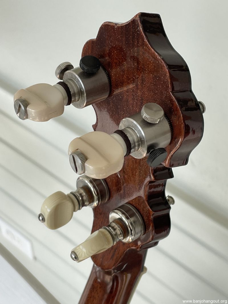 Nice Hopkins mahogany banjo in very nice condition, no issues. Tony Pass rim, Keith D-tuners installed, TKL case. No trades.