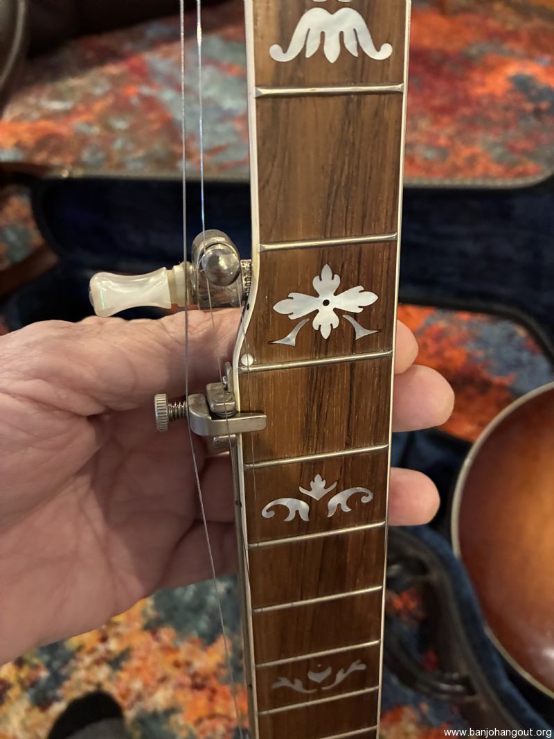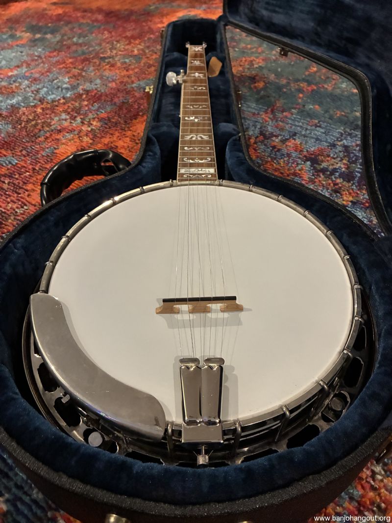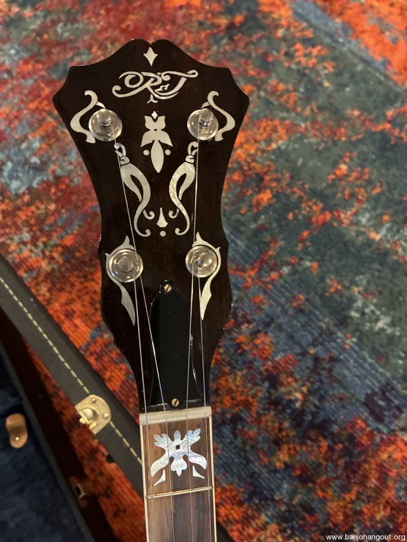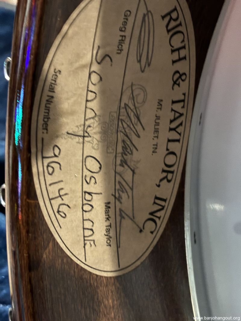 Rich&Taylor Sonny Osborne features curly maple neck and resonator, rosewood fretboard with Shubb fifth string capo, original tuners and nickel plated hardware. Minimal fret wear and only light signs of use. Wonderful tone and playability. TKL case with dark blue lining.
