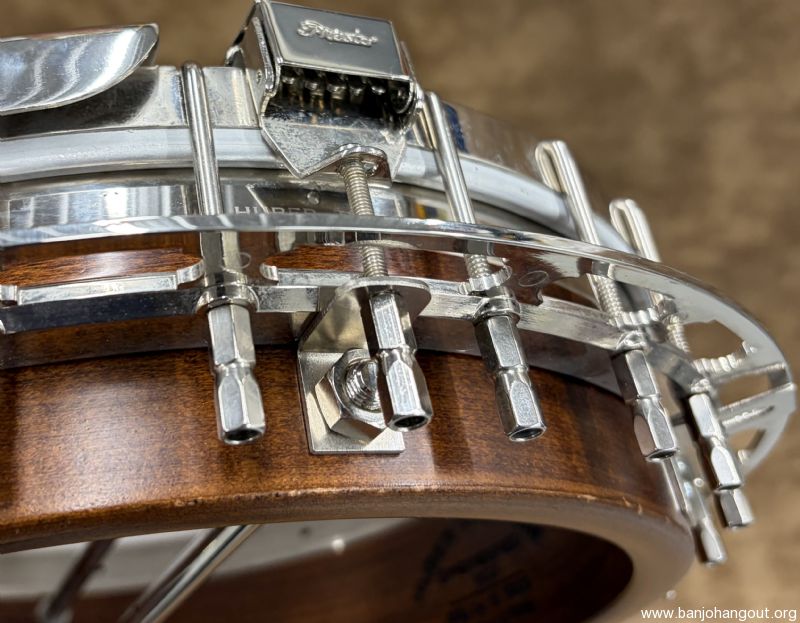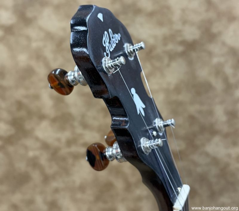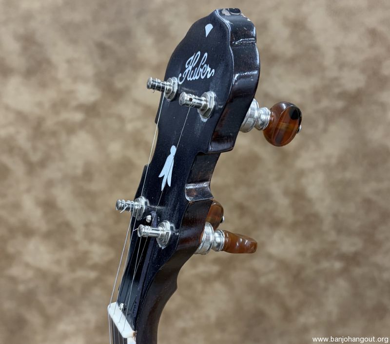 This banjo is basically in the classic Style 1 configuration but with a full weight tone ring. The Huber mahogany neck shows the Style 1 inlay with fiddle cut peghead and the pot assembly is a Huber Truetone with the Engineered Rim and HR-30 tone ring. The resonator is a torrefied from Warren Yates. The banjo has 5th string spikes and is housed in a new Superior hard case. This one has classic mahogany tones and is very responsive. If you need additional pictures or have any questions, don't hesitate to ask. Thanks for looking! Here's video: youtube.com/watch?v=UGYipoQkGvc