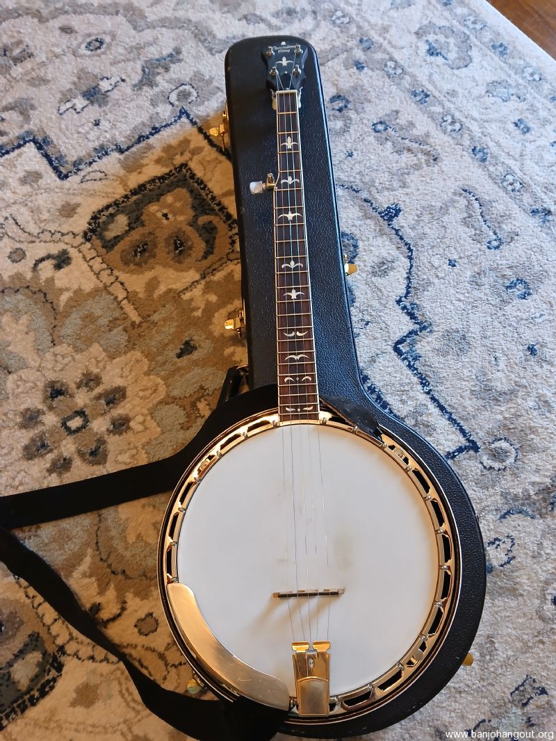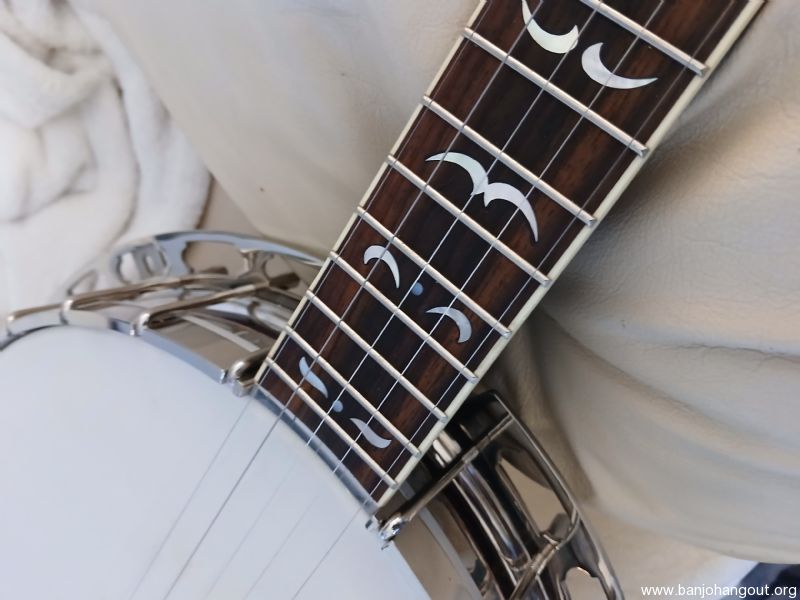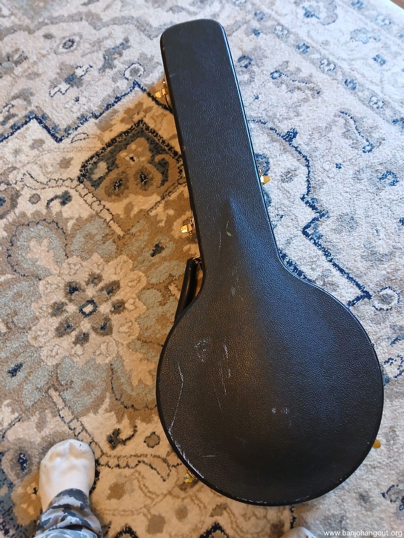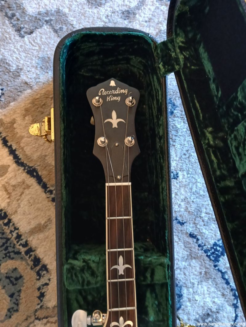 I've had this banjo hanging in my music room for about a year or so.l put it together from parts l have purchased from the Hangout over the years.All metal is RK except armrest and tailpiece. The tailpiece came off of a Hatfield gold plated banjo,and armrest is a good brass ,nickle plated,high quality, armrest.Comes shipped in a nice hard shell case,and strap is included. Frets are in fantastic shape.lm not sure who made the resonator, but it fits like its supposed to,and is a good high quality mahogany reso.The neck l believe is from an R K 35 ,which l believe would make it maple, but lm not sure.All parts fit great, like they are supposed to.A great sounding banjo,for a budget price.If you have questions, don't hesitate to ask. Thanks for looking .Feel free to make an offer.Just trying to break even