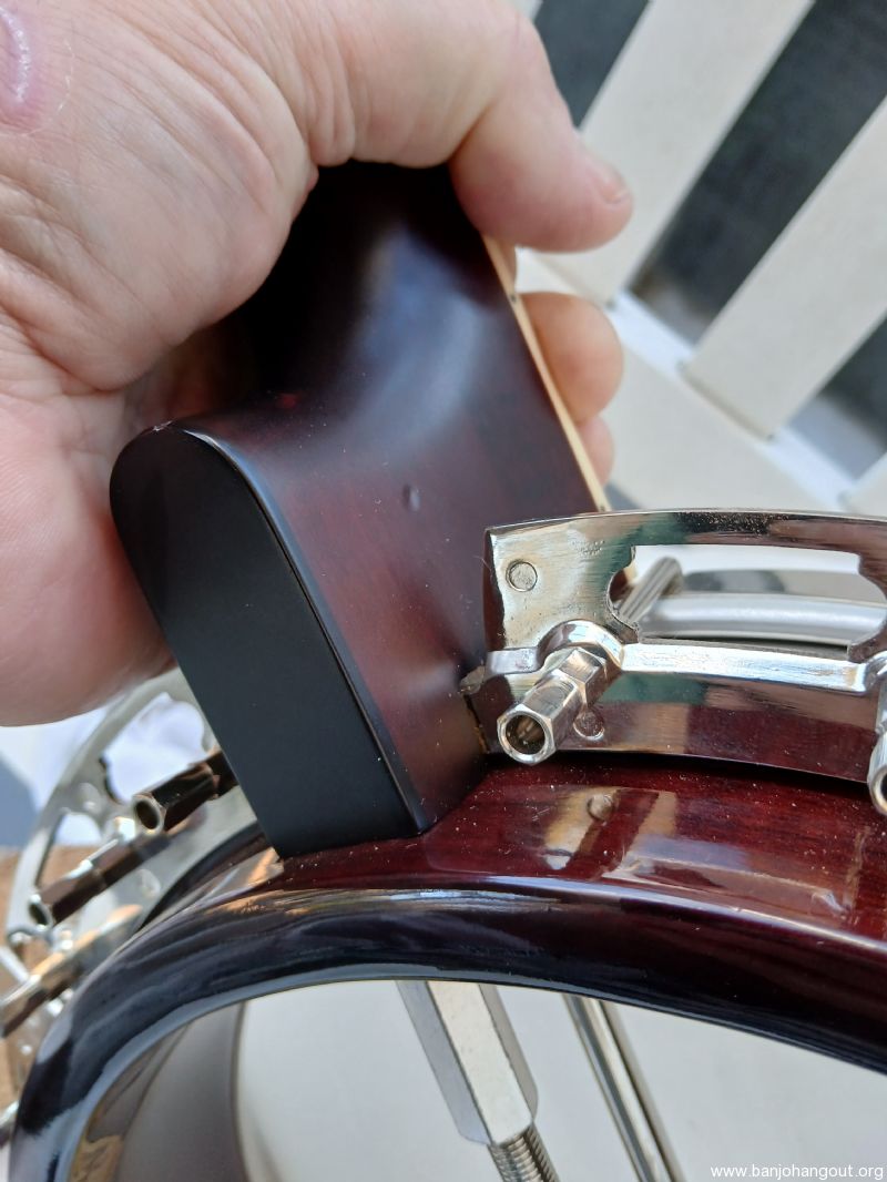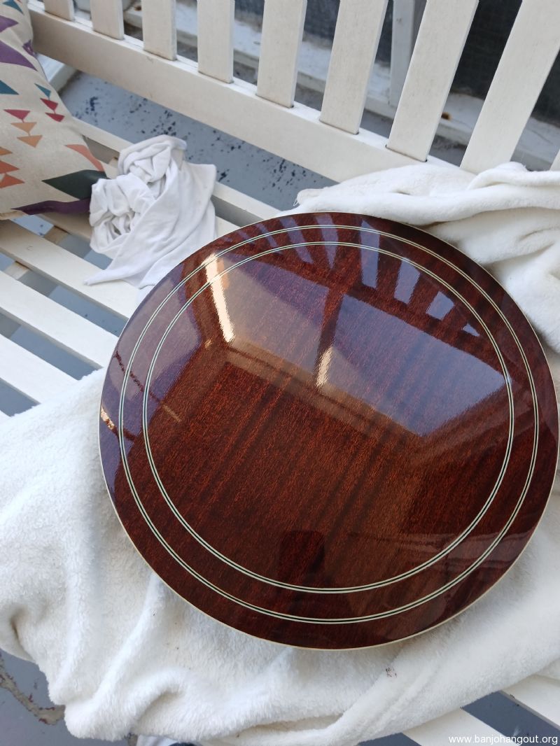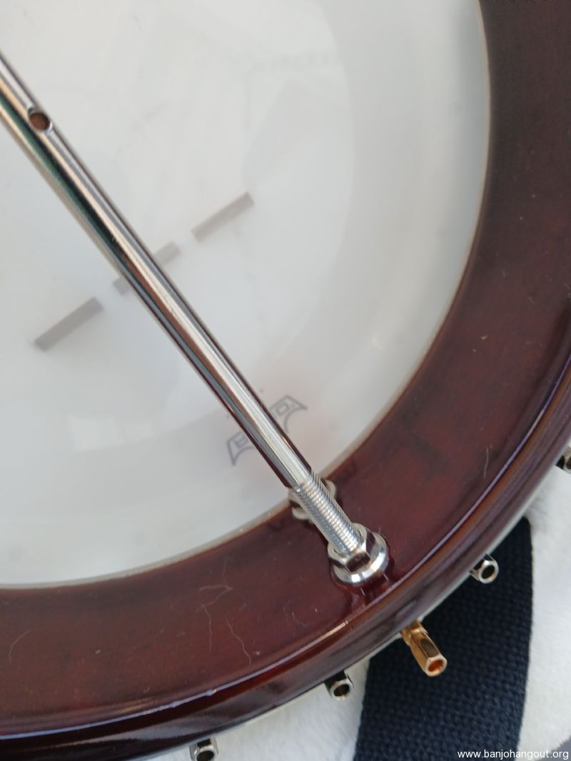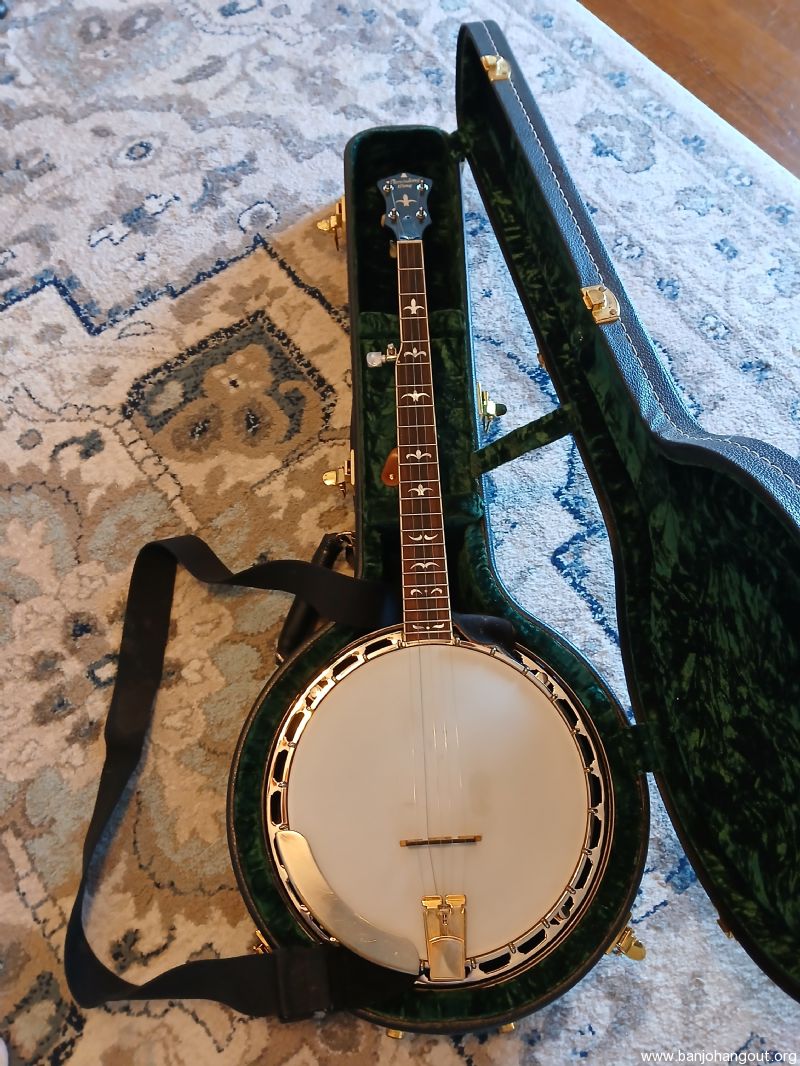 I've had this banjo hanging in my music room for about a year or so.l put it together from parts l have purchased from the Hangout over the years.All metal is RK except armrest and tailpiece. The tailpiece came off of a Hatfield gold plated banjo,and armrest is a good brass ,nickle plated,high quality, armrest.Comes shipped in a nice hard shell case,and strap is included. Frets are in fantastic shape.lm not sure who made the resonator, but it fits like its supposed to,and is a good high quality mahogany reso.The neck l believe is from an R K 35 ,which l believe would make it maple, but lm not sure.All parts fit great, like they are supposed to.A great sounding banjo,for a budget price.If you have questions, don't hesitate to ask. Thanks for looking .Feel free to make an offer.Just trying to break even