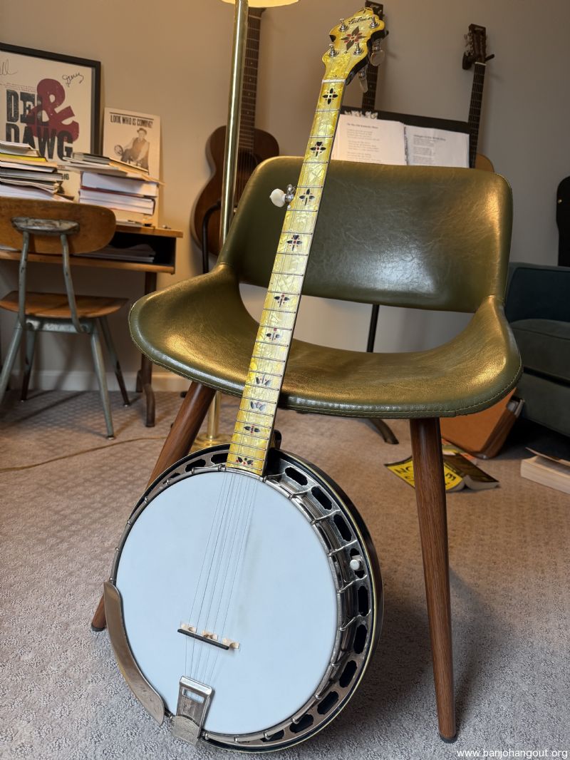Howdy folks, howdy. 1930’s Style 11 conversion for sale. This was converted in 2024 by the great Richie Dotson with a period correct neck that is color-matched to the resonator. Uncut rim, all original metal parts, original windowpane tailpiece, Dotson bridge and Planetary tuners. RR spikes at 7 and 9. Minimal flange pull and the reso sits in really nicely.