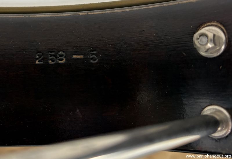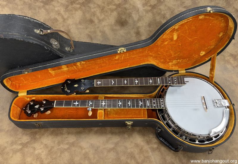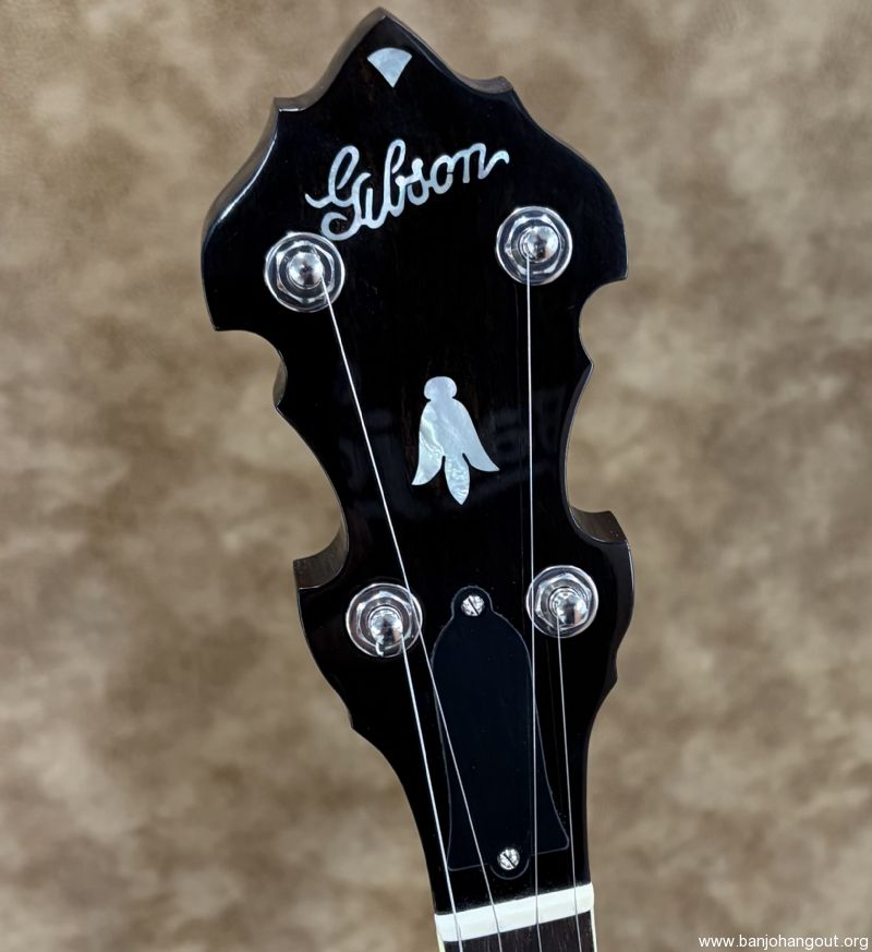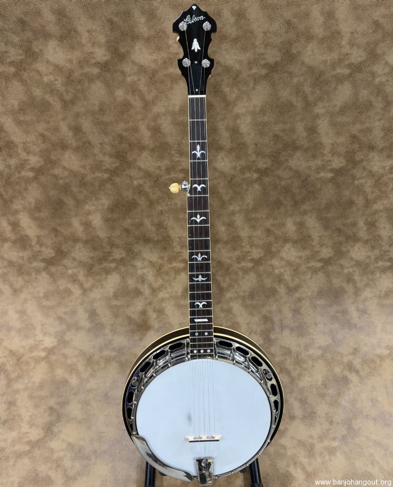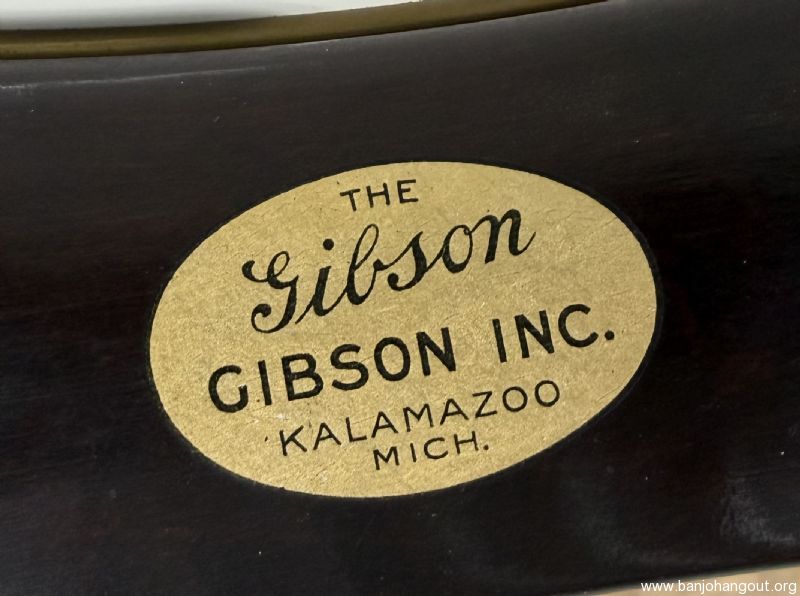 This 1935 Gibson Style 1 is about as clean as it gets. F.O.N. 258-5 remains all original and uncut retaining its 1/4" brass hoop. The mahogany neck is brand new from Frank Neat and the original tenor neck and case are included in the sale. 5th string spikes are installed and it ships in a vintage Lifton case. If you need additional pictures or have any questions, don't hesitate to ask. Thanks for looking! Here's video of this banjo: youtube.com/watch?v=oKGi8IrN2o8