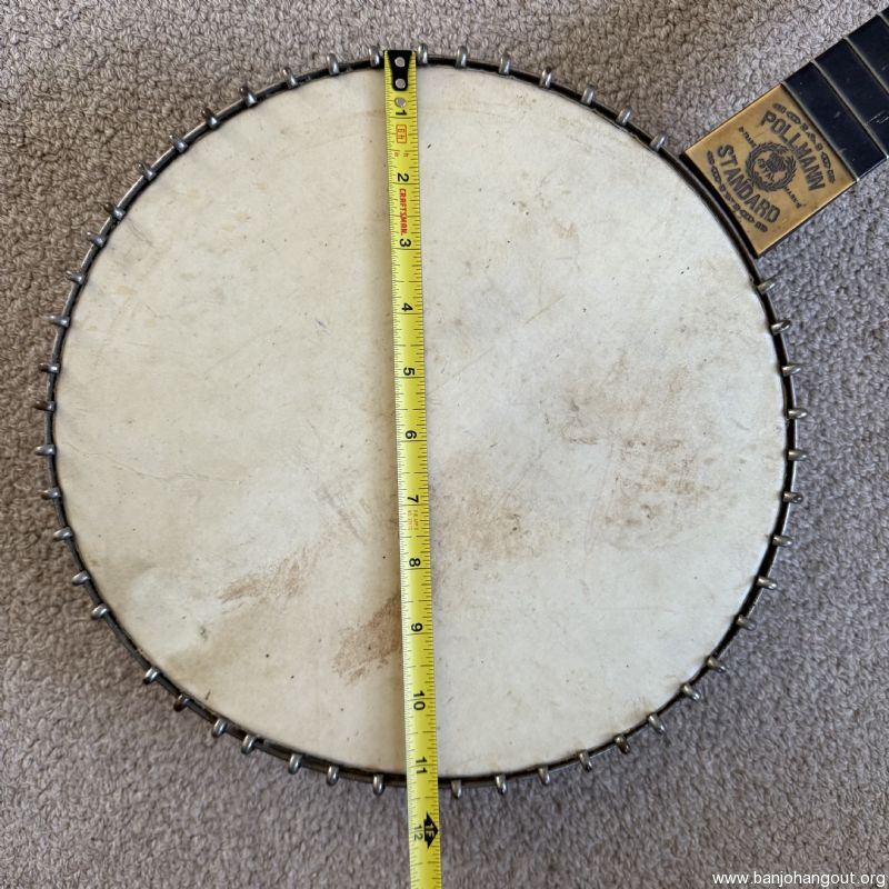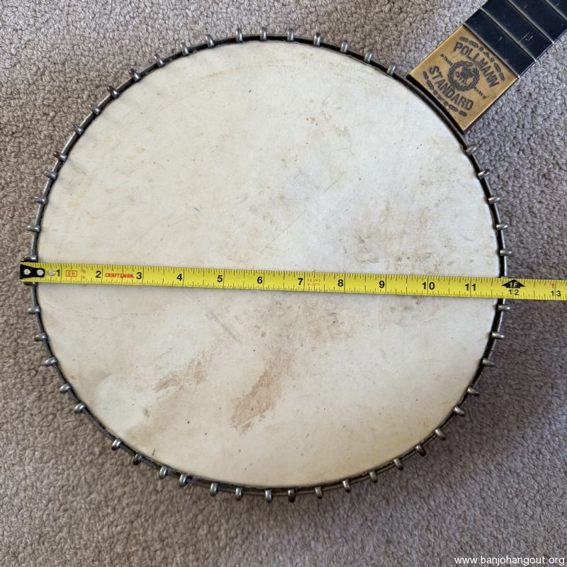 The open back has a 12" pot, but has suffered some egging over the years and is not longer in round. That being said, it only needs a tailpiece and bridge and it's done.