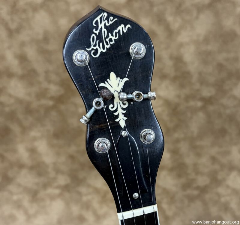 This Gibson Style 1 from 1928 features the more rare "Pyramid" tone ring configuration. This banjo's conversion was the work of renowned luthier C.E. Ward of NC. C.E. is widely known for his creativity and "out of the box" thinking. The famous original Sonny Osborne 6-string Vega neck seen in Bluegrass Country Soul movie (1971) was by C.E. Ward. This conversion neck features the Nick Lucas inlay style with bone inlay and bone frets and a fantastic profile. The cam tuners were most likely made by C.E. as well but one needs a "stop" installed. If you have any questions or desire additional pictures, don't hesitate to ask. Thanks for looking! Here's video: youtube.com/watch?v=JPcRYOe3_-w