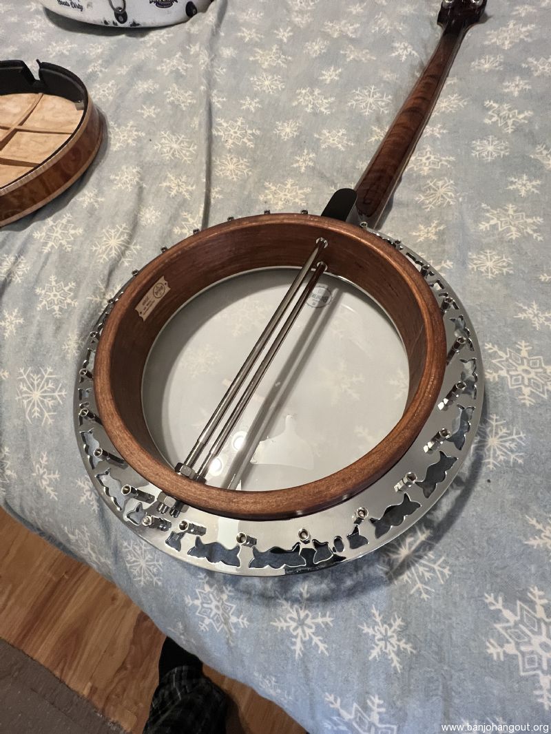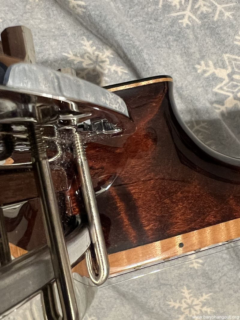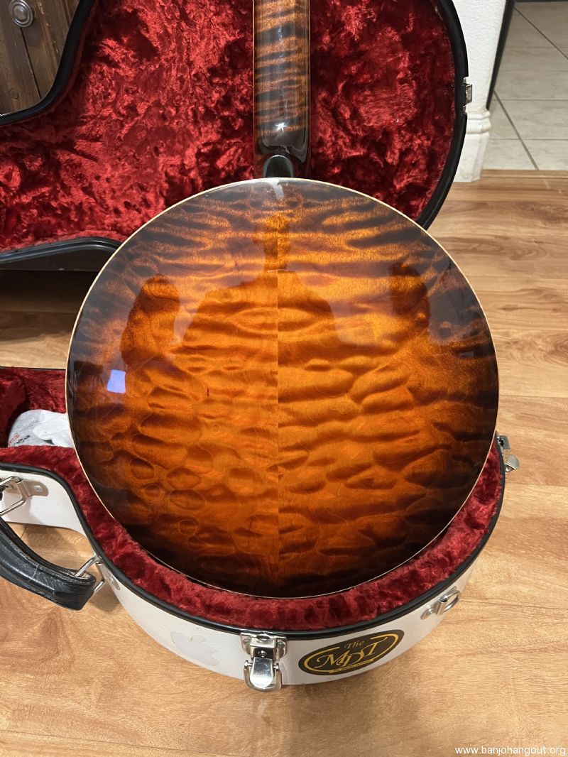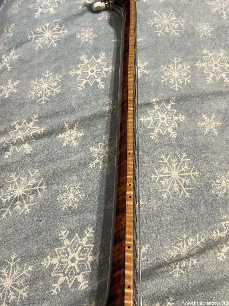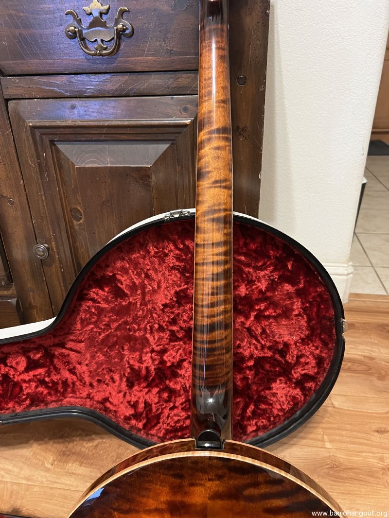 Mint Condition. I honestly can't find a flaw on this banjo - no scratches, or dings. It does not look like it has been played very much since it was built in 2011. There is no noticeable fret wear on it. I would honestly say it is in mint condition.