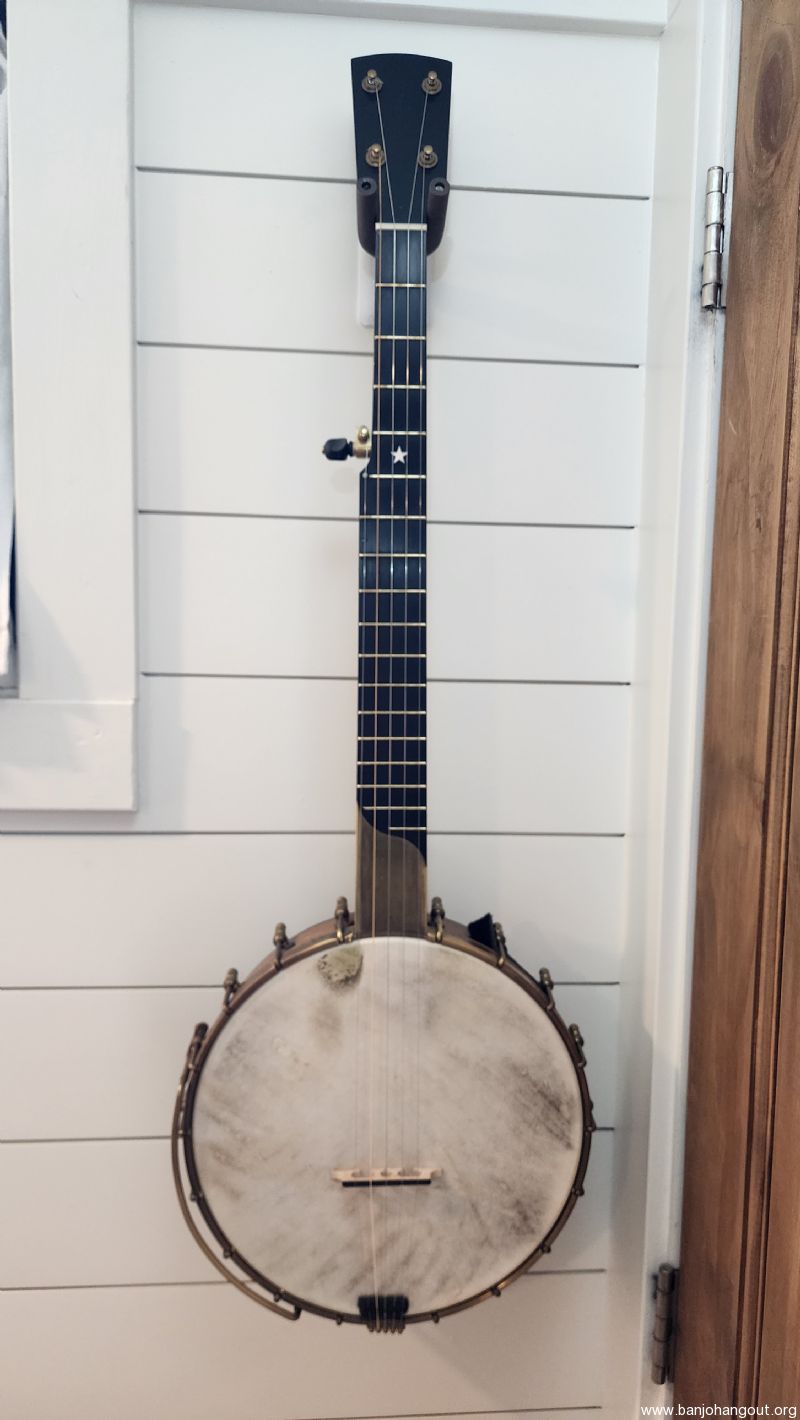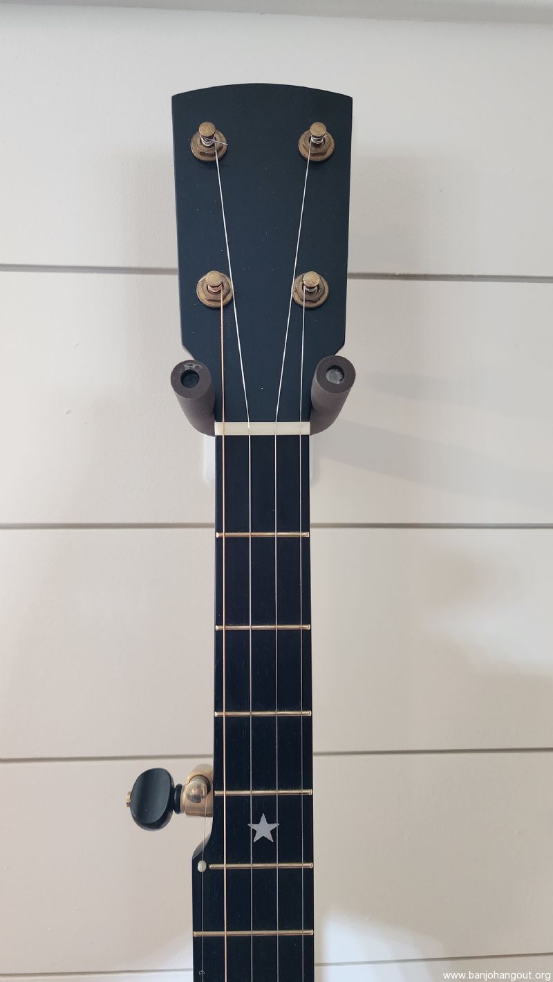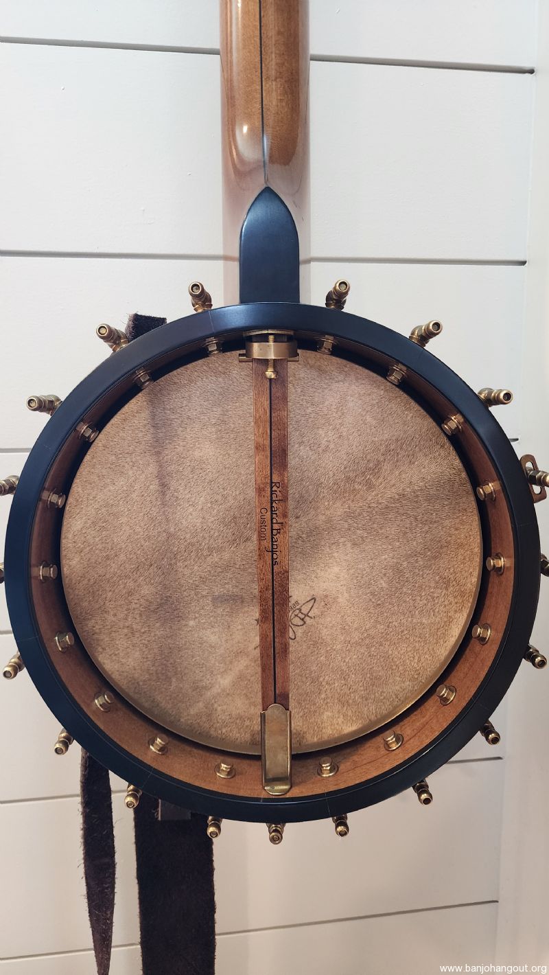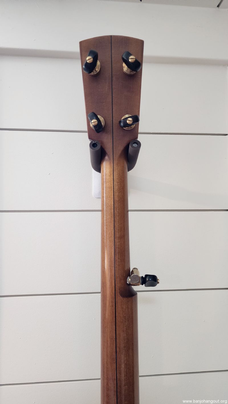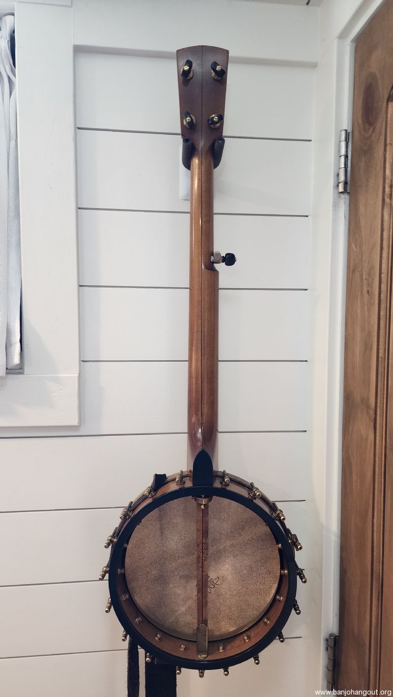This banjo was verified by Rickard customer service as being built in 2019 for Carter Vintage Guitars in Nashville with serial number 0957. It is a short scale open back with with an 11" pot. I am unsure of the neck/pot wood due to it being darker than their standard maple, but it is either cherry or maple. This Rickard has the Silver Bell tone ring which is mellow but also has cutting level volume with a bell-like sustain. It has a John Balch hide head with a little thumb wear but otherwise in great playing condition.