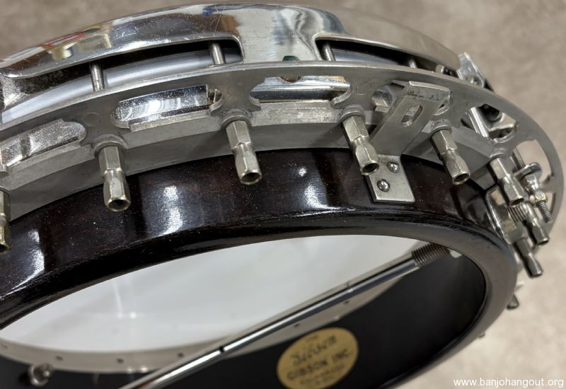 This 1932 Gibson Style 1 F.O.N. 9877-14 has been converted to a fabulous bluegrass machine by Steve Huber with his mahogany neck with Style 75 inlay and an HR-30 tone ring installed. The banjo shows patina for 94 years and is ready to go. If you have any questions or desire additional pictures, don't hesitate to ask. Thanks for looking! Here's video: youtube.com/watch?v=ZibEFa7UBQ0